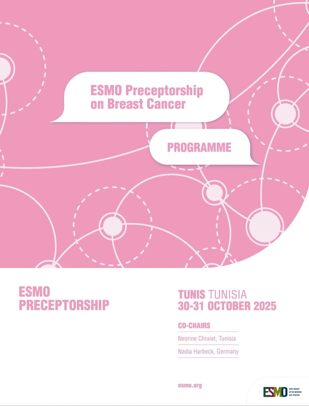 “Glad to share my participation as a speaker at the ESMO Preceptorship on Breast Cancer (30–31 Oct) in beautiful Tunisia. It was a privilege to join such a distinguished faculty especially that it was the first edition taking place in Tunisia.