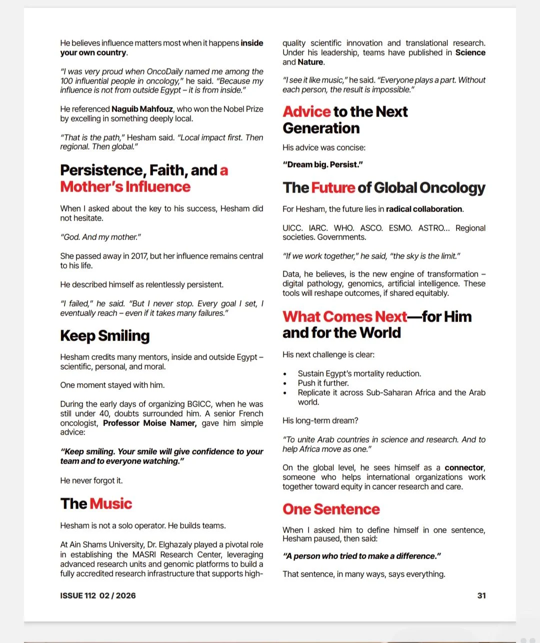 “Truly grateful to be featured in this edition of CancerWorld, alongside inspiring voices — including Dr Cary Adams, Union for International Cancer Control (UICC) CEO — and many other leaders who continue to persist in making a real difference in cancer care globally.