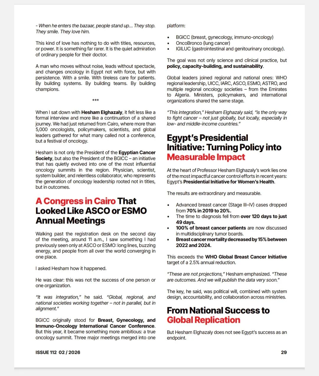 Hesham ElGhazaly, Elected President of the Executive Board at Egyptian Cancer Society, Professor of Clinical Oncology at Ain Shams University, and the Founder and CEO of Alfa Cure Oncology Center, shared a post on LinkedIn: