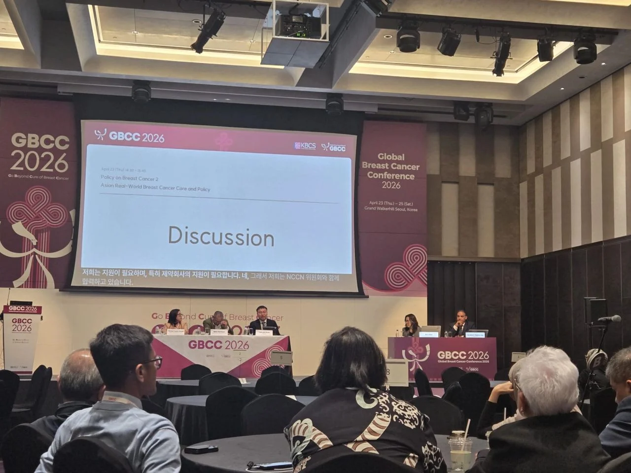 “It was a great pleasure visiting Seoul, Korea for the first time, kindly invited by Prof. Sungbae Kim, to attend and participate in GBCC (Global Breast Cancer Conference) 2026 as a moderator and contributor to key discussions on global breast cancer policy and collaboration.