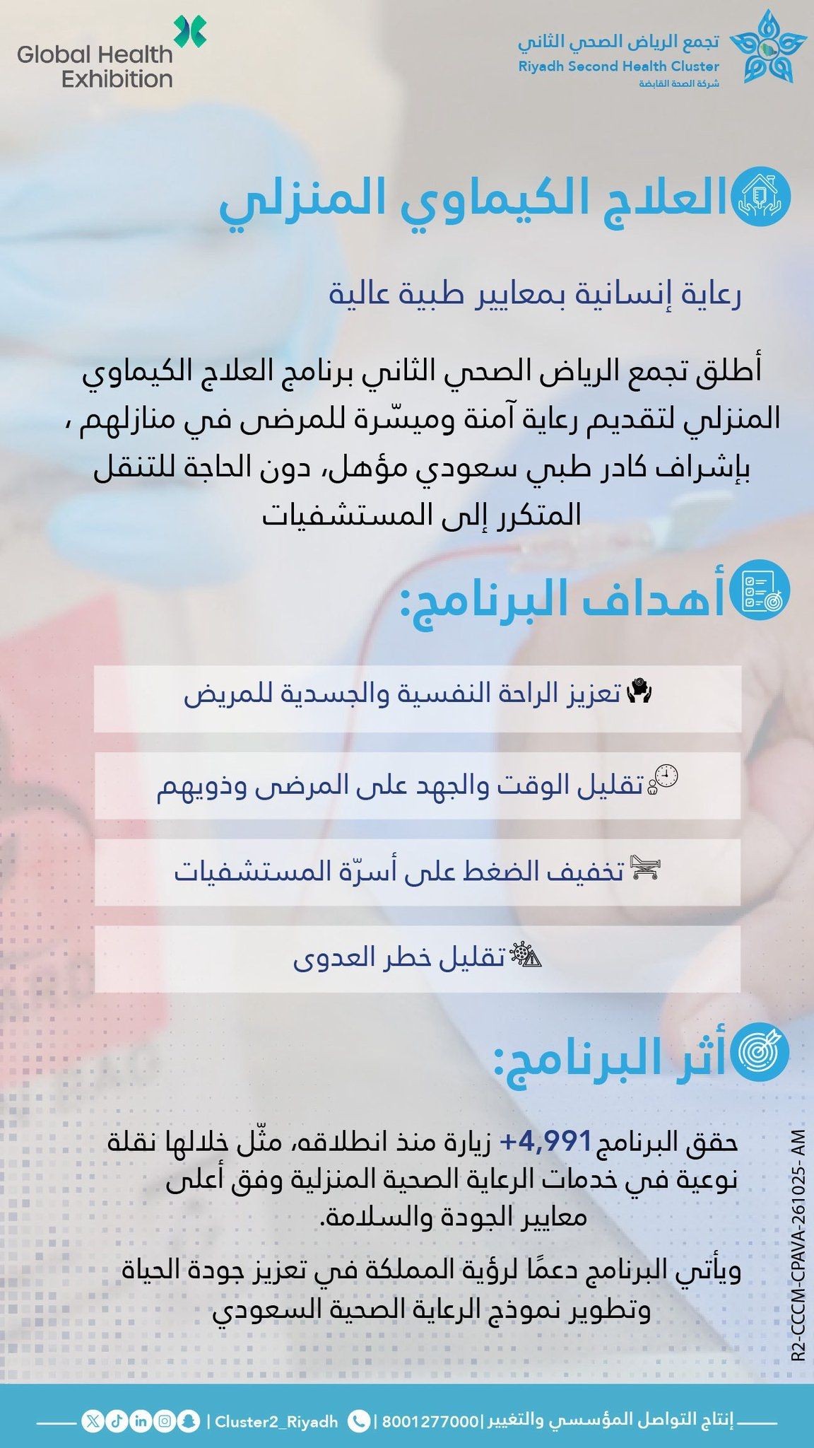 “Happy to exhibit our Home Chemotherapy project representing Pharmacy at Riyadh Second Health Cluster last week at the GHE25!