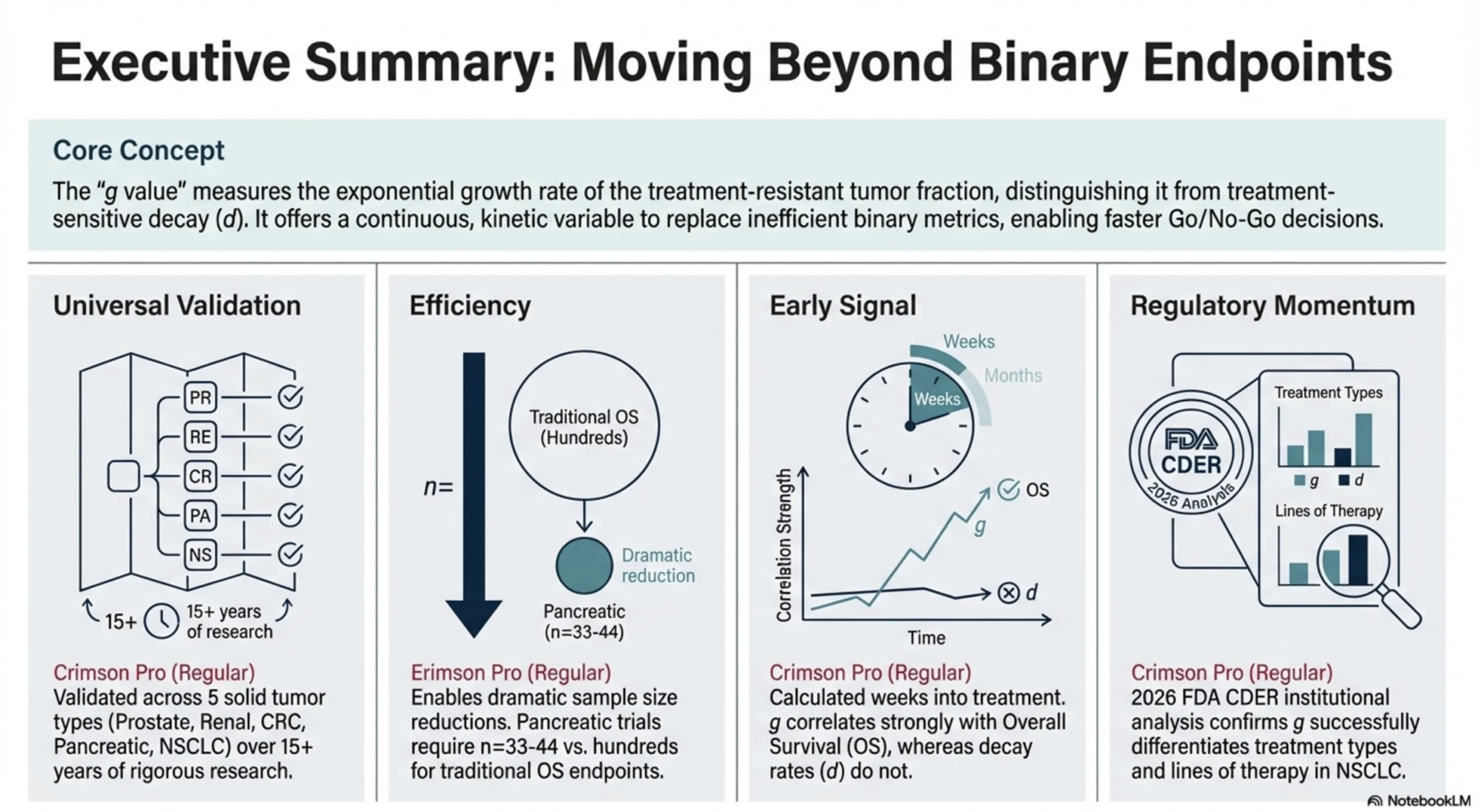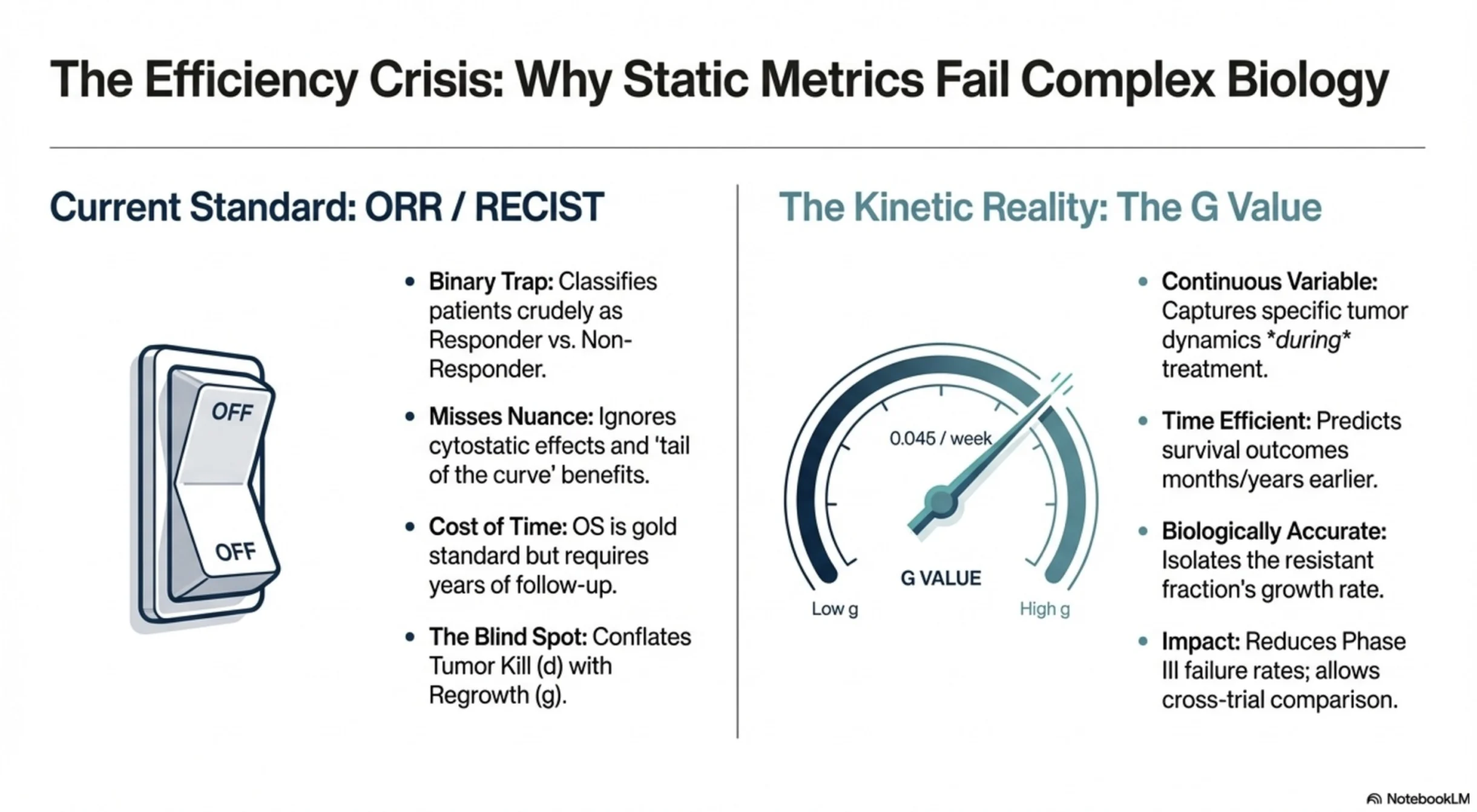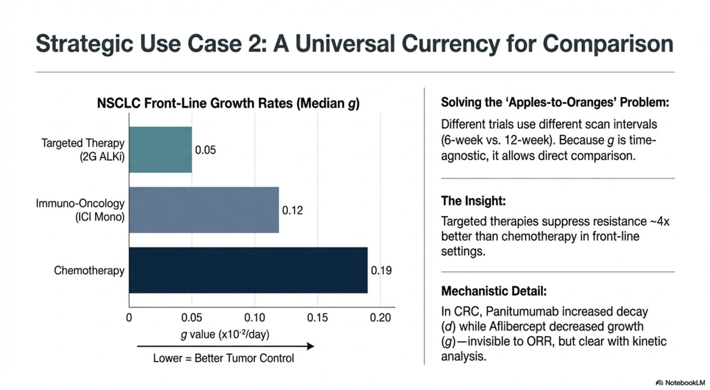 Lower g means slower tumor growth — better disease control. One metric that could help pharma teams prioritize portfolios, clinicians think about sequencing, regulators and payers assess value, and patients understand whether a treatment is truly holding disease in check.