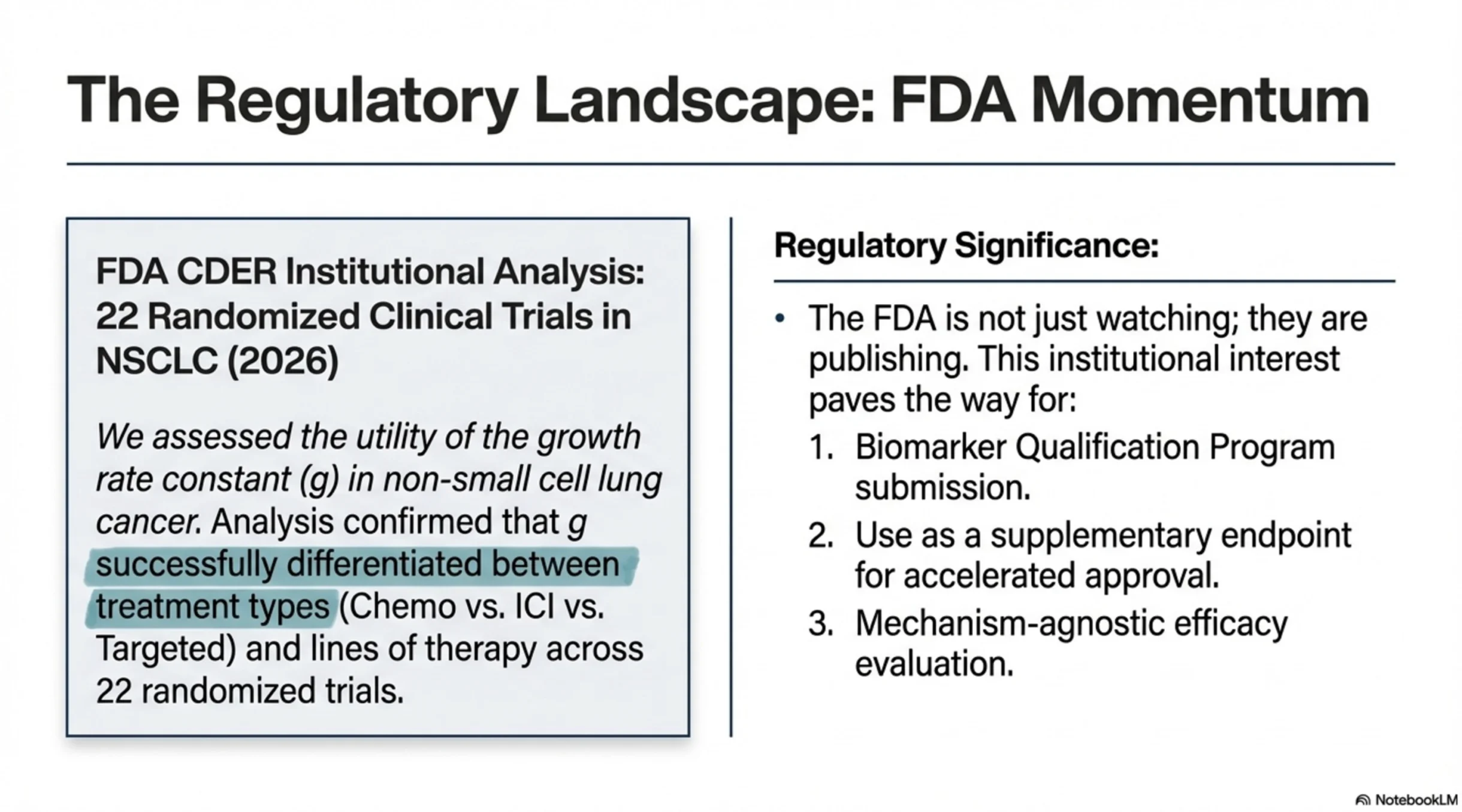 The FDA has just published an analysis applying tumor growth rate modeling (the ‘g value’) across 22 NSCLC trials and more than 13,000 patients (Malinou et al, 2026). This work builds on ~15 years of research across prostate, renal cell, colorectal, pancreatic cancer, and now lung cancer.