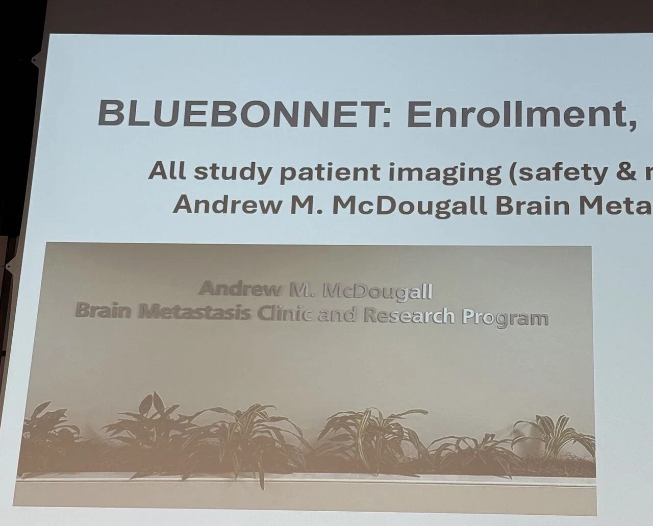 Highlighted role of Andrew M. McDougall Brain Metastasis Clinic in multidisciplinary care, trial ongoing.”