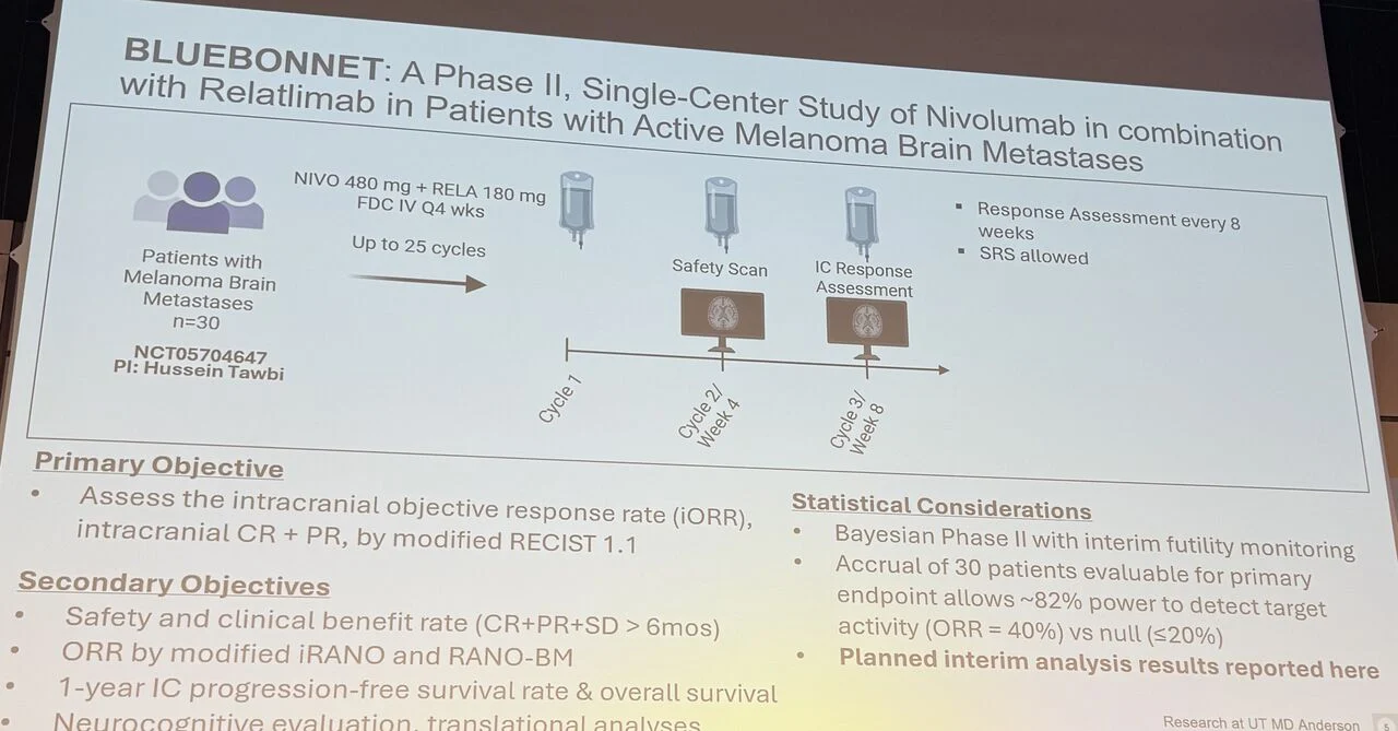 “Expertly presented EADO 2026 by Liz Burton, PhD, MBA: planned interim results of BLUEBONNET 50% intracranial response to Nivo+Rela in active Melanoma Brain Mets, excellent safety.