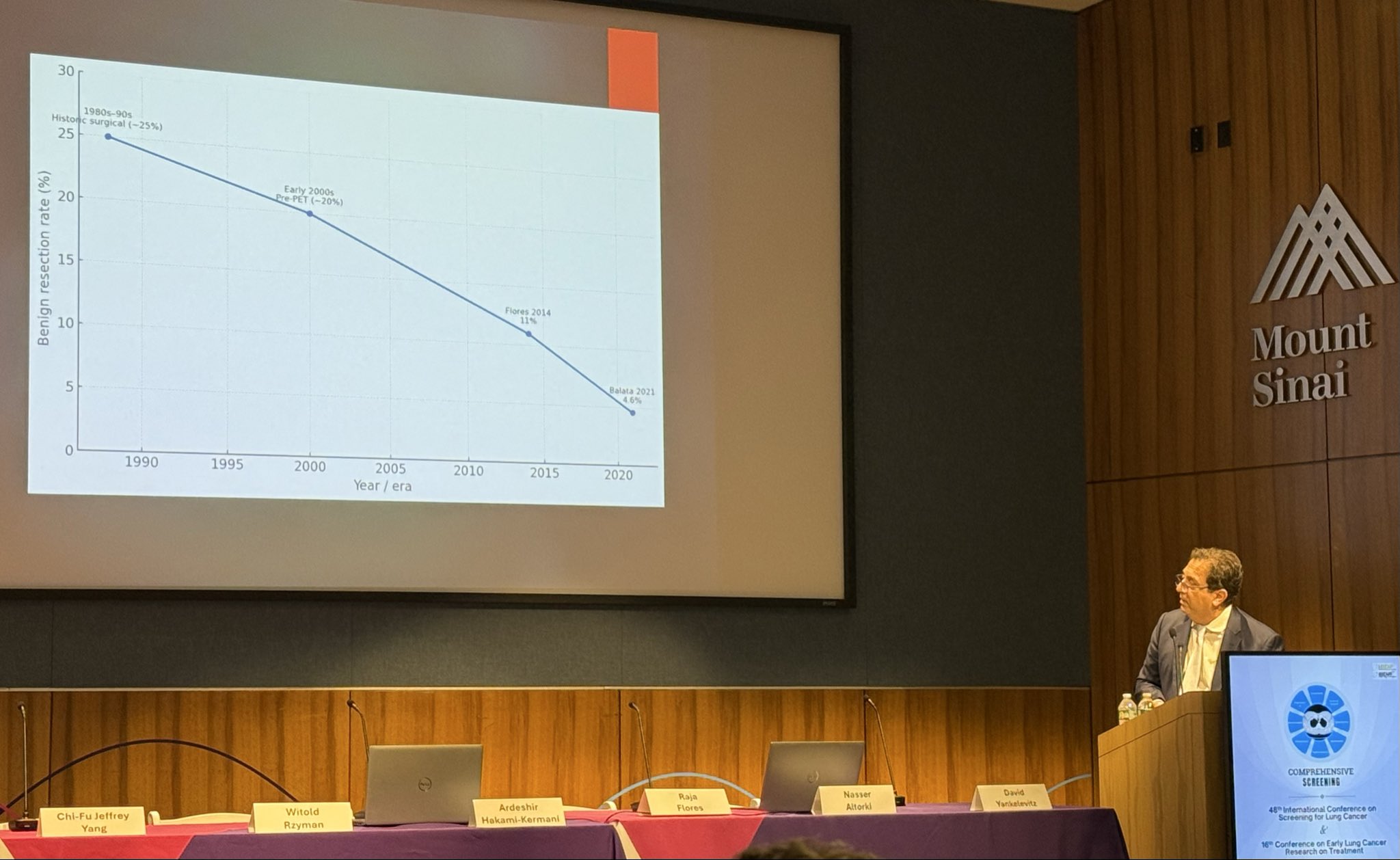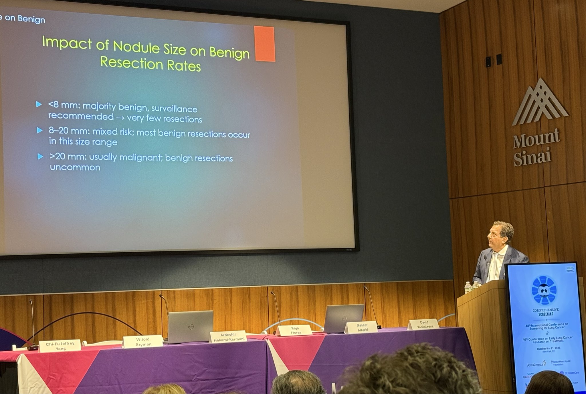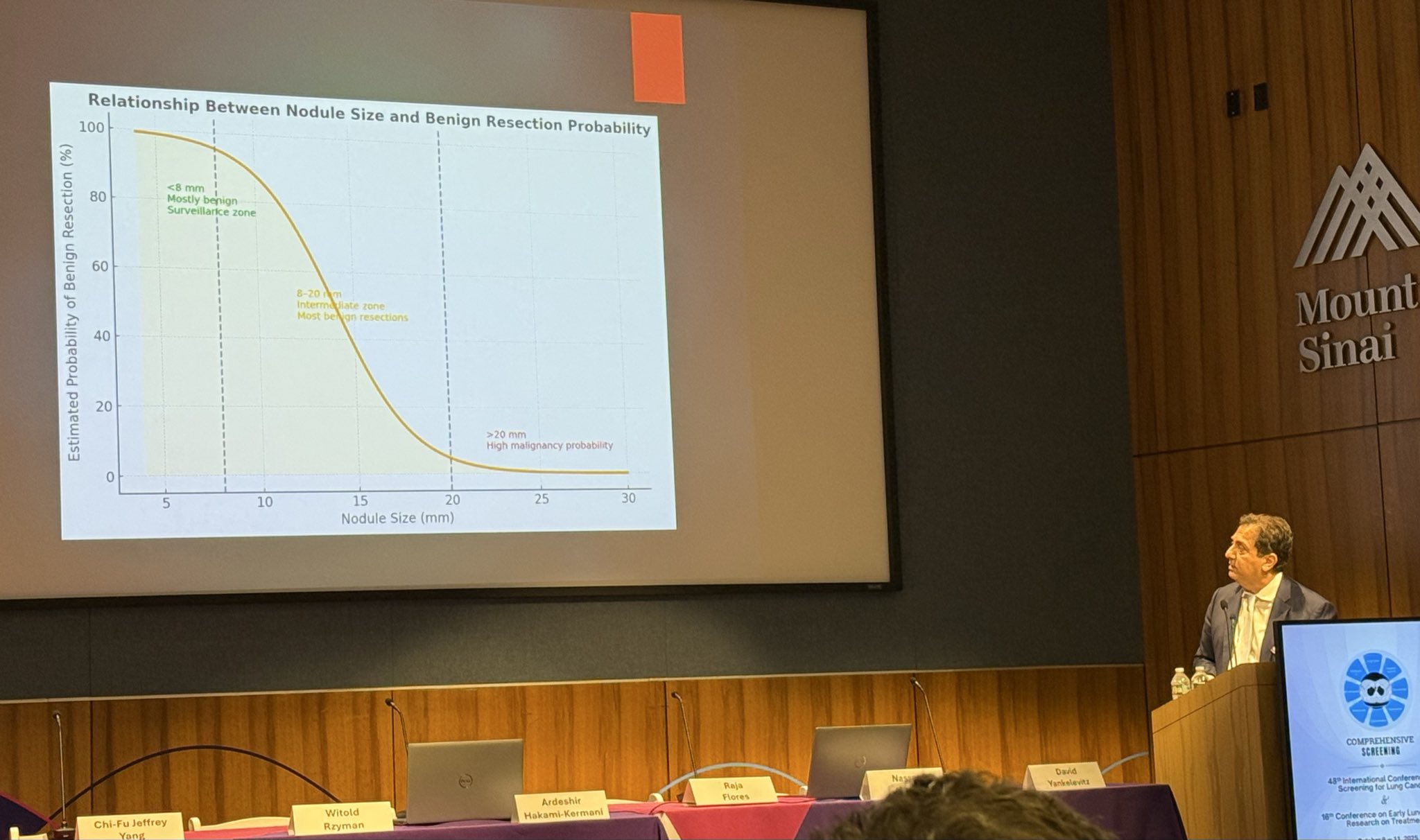 “Excellent presentation this morning by Dr. Ardeshir Hakami-Kermani at the 48th IELCAP meeting about avoiding lung resections in patients with benign nodules. The data have clear implications for SBRT enthusiasts. Take home message = biopsy first.”