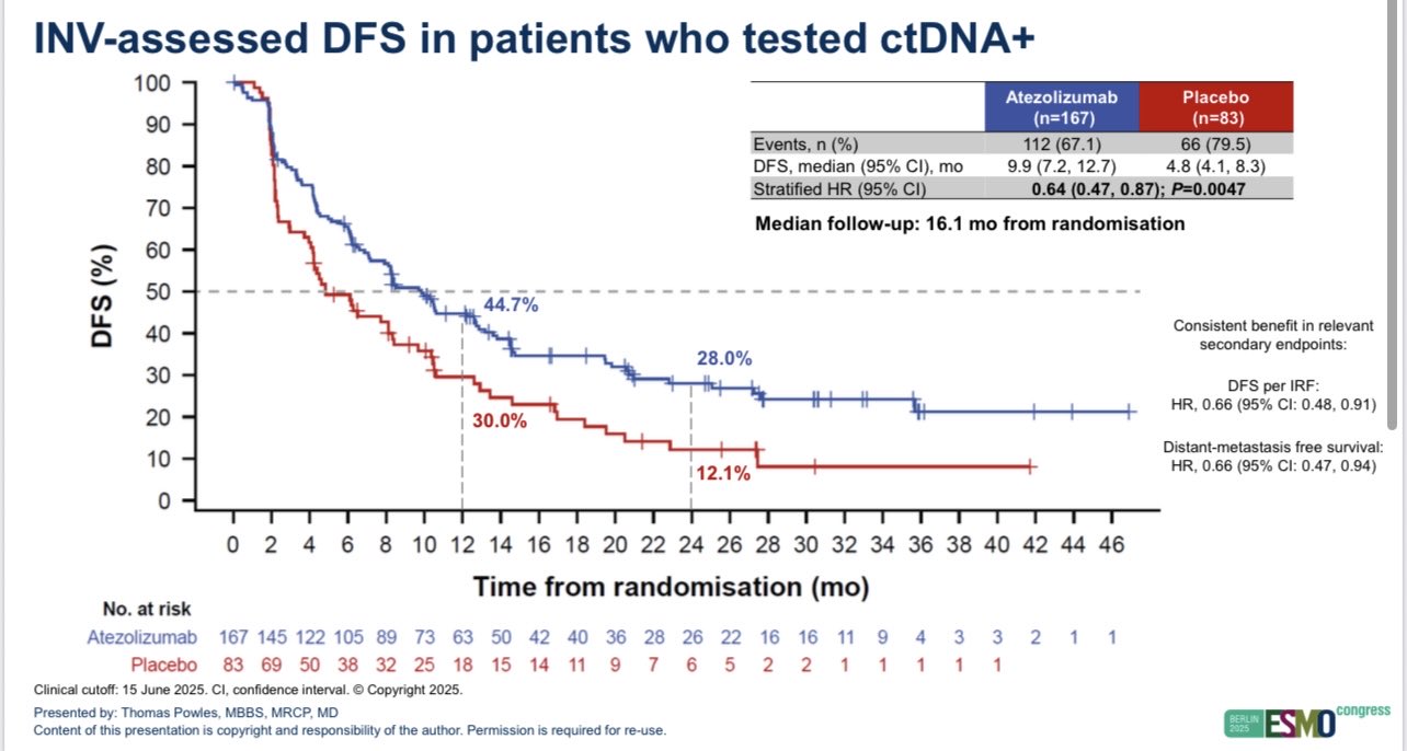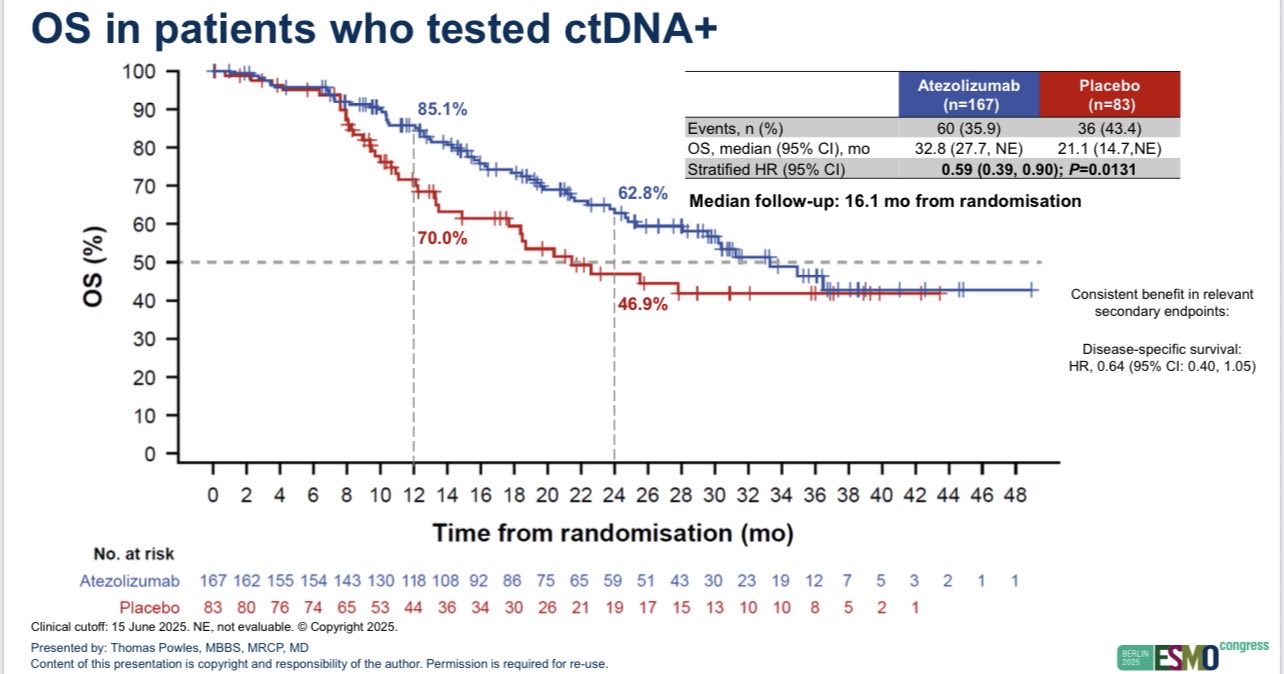 ctDNA positive patients had DFS and OS benifits with atezolizumab.