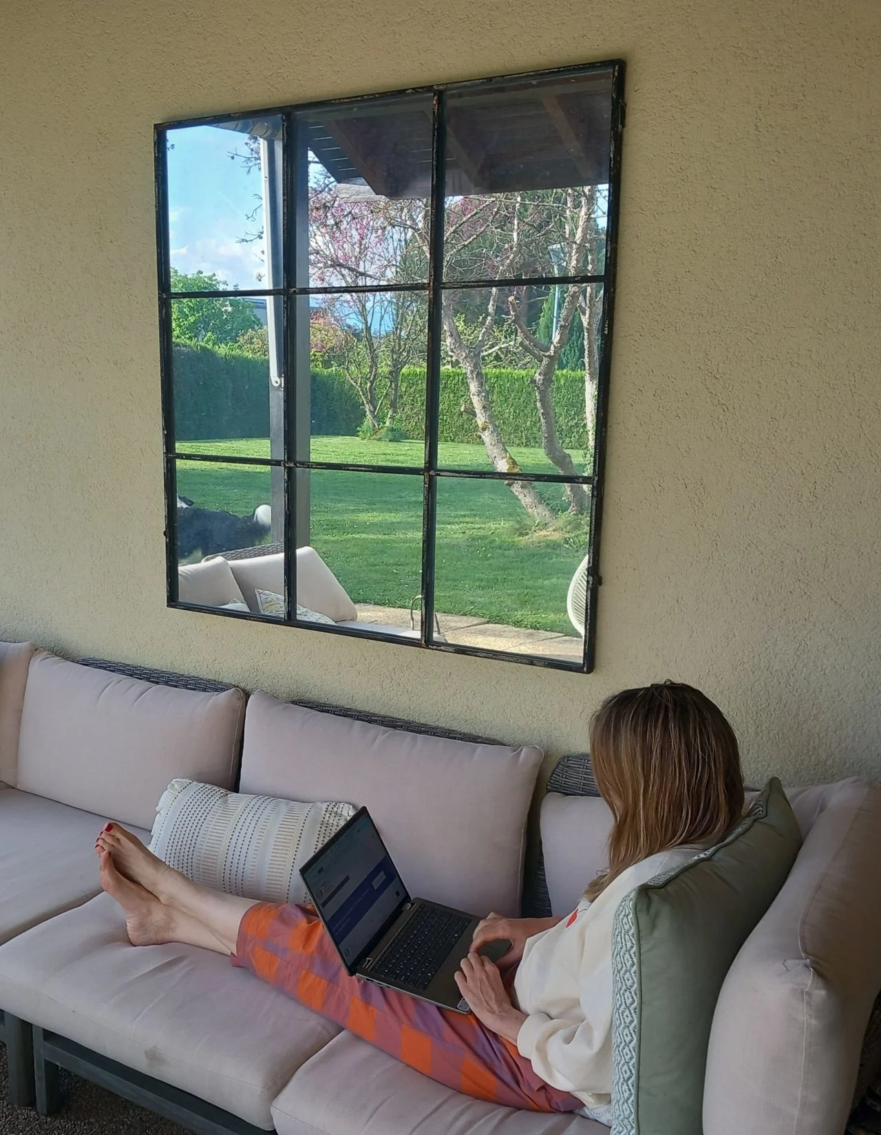 Below: drafting this post ,captured by my son.