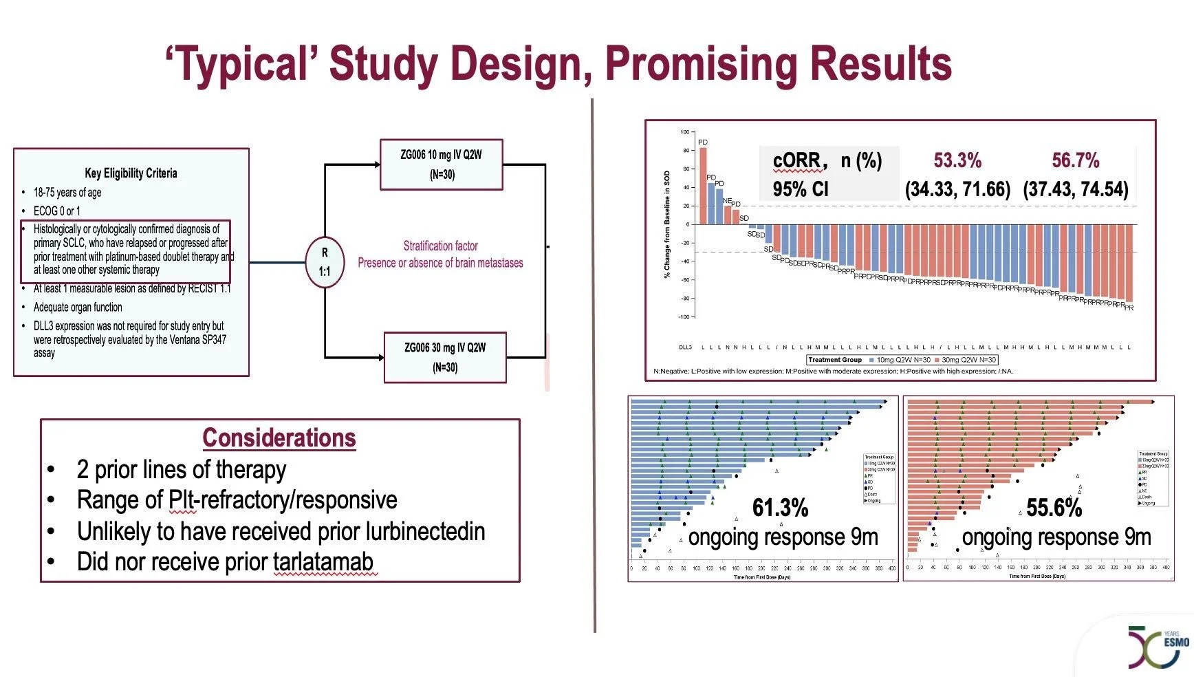 - Ph II Alveltamig in SCLC: a new trispecific DLL3 TCE: demonstrates cORRs in ~60% range with durable responses