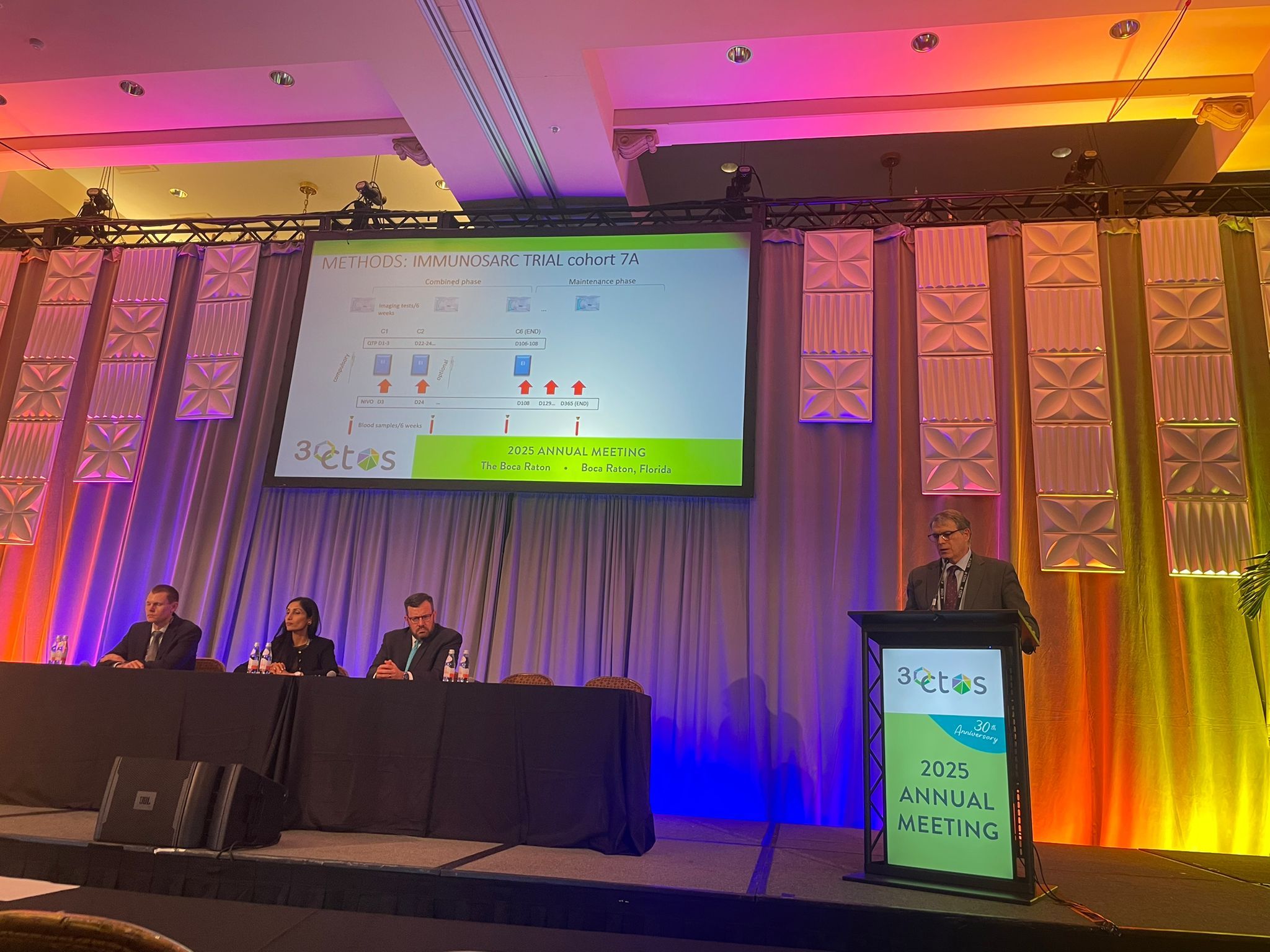 ” I felt very proud to present, on behalf of the Spanish Sarcoma Research Group (GEIS), the final results from cohort IB at the CTOS meeting in Boca Raton (FL), which investigated the combination of epirubicin, ifosfamide, and nivolumab as a first-line treatment for advanced UPS within IMMUNOSARC trial.