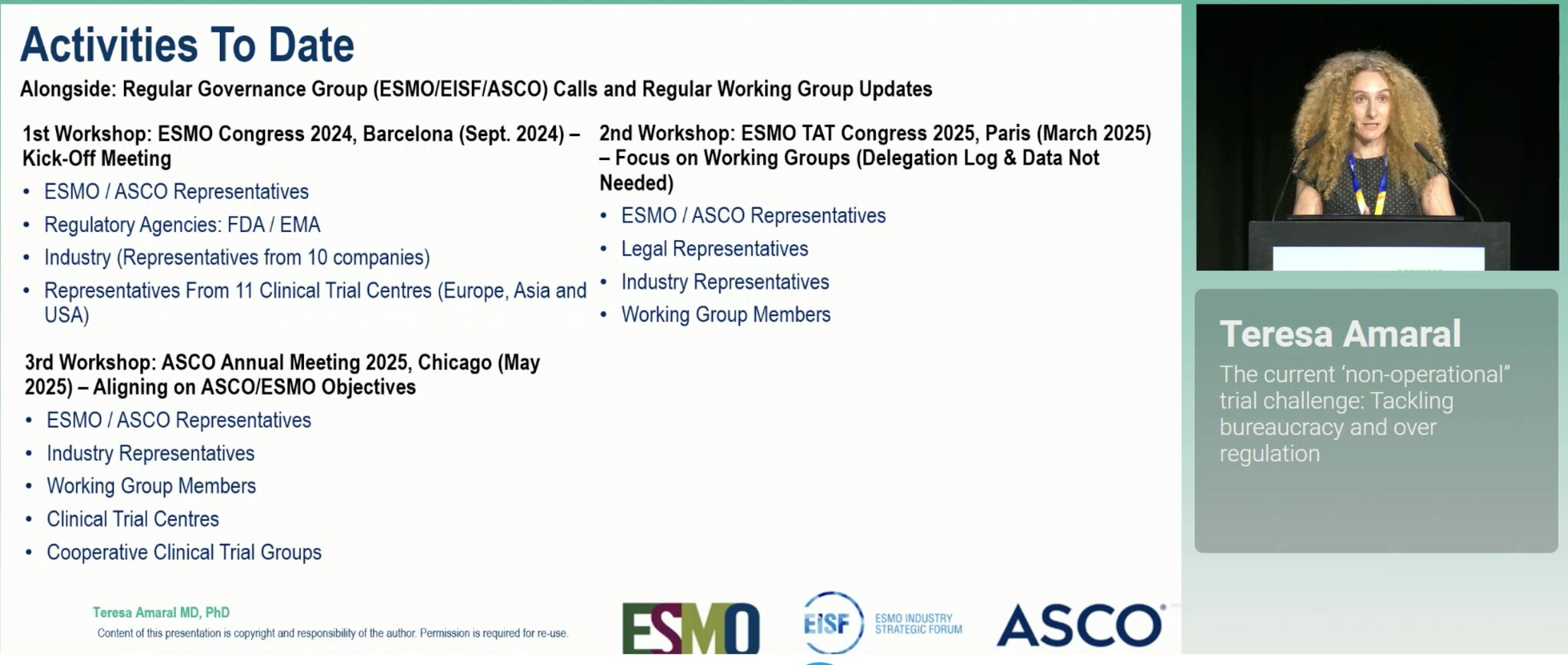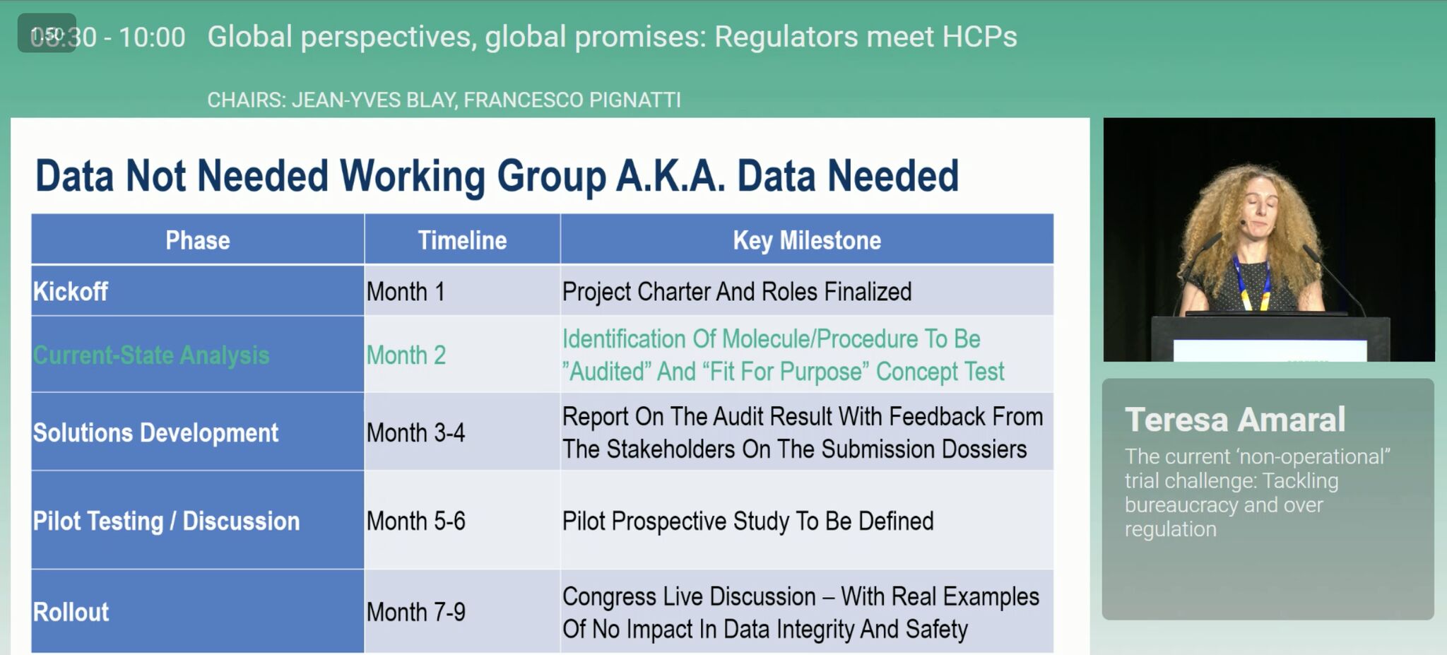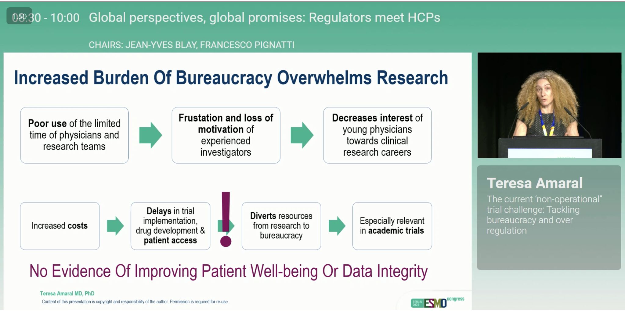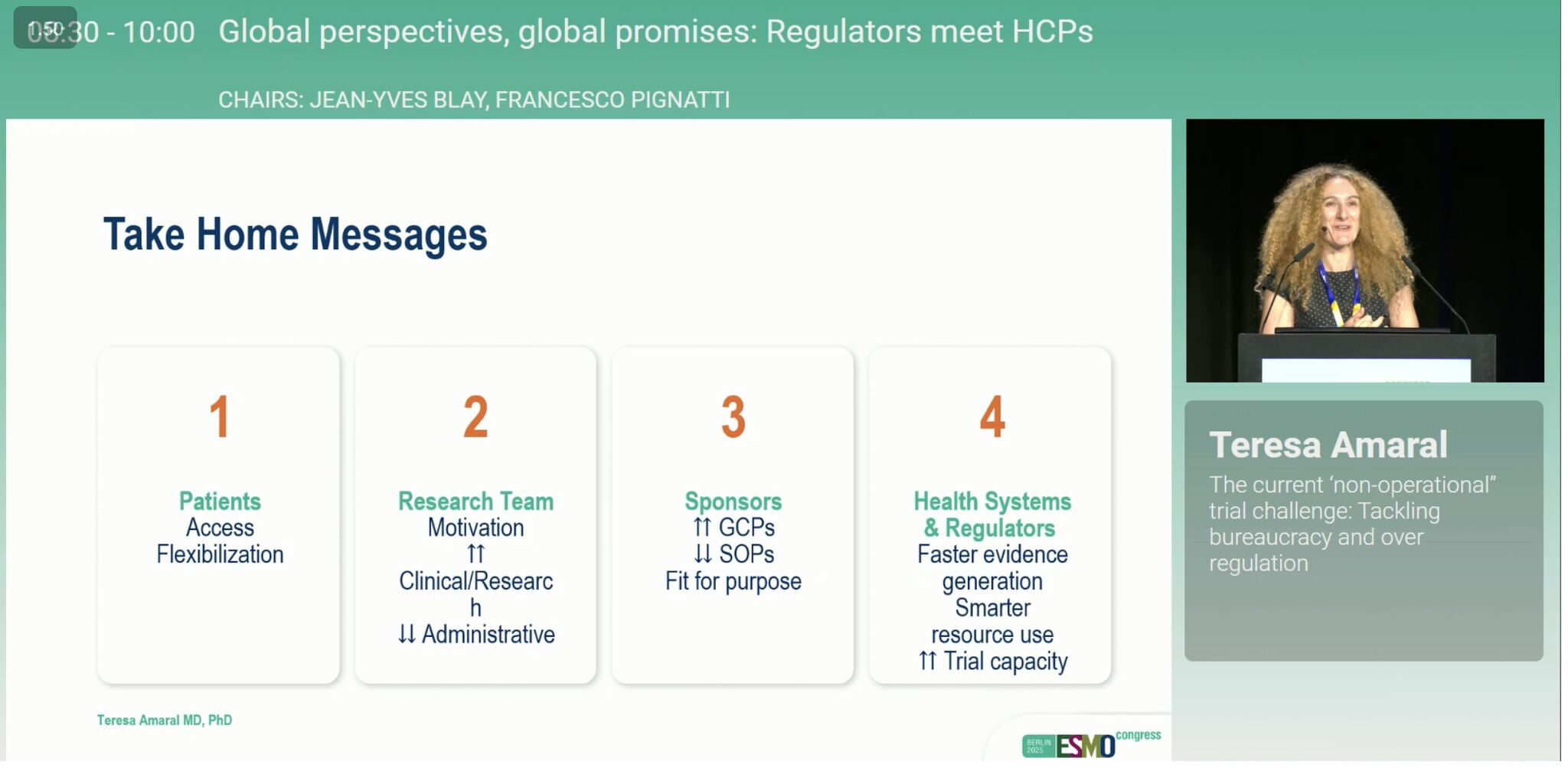 The educational session ‘Global perspectives, global promises: Regulators meet HCPs‘ really stood out for me. As a phase 1 oncologist I see so much inefficiency, death by paperwork, which is delaying trial conduct, increasing burnout in our trials team, and delaying access by increasing cost of drug development.
