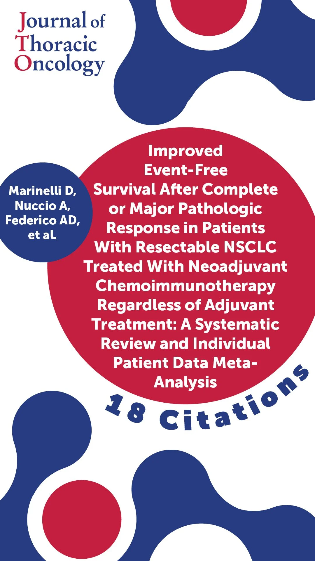 - Improved Event-Free Survival After Complete or Major Pathologic Response in Patients With Resectable NSCLC Treated With Neoadjuvant Chemoimmunotherapy Regardless of Adjuvant Treatment: A Systematic Review and Individual Patient Data Meta-Analysis – Link