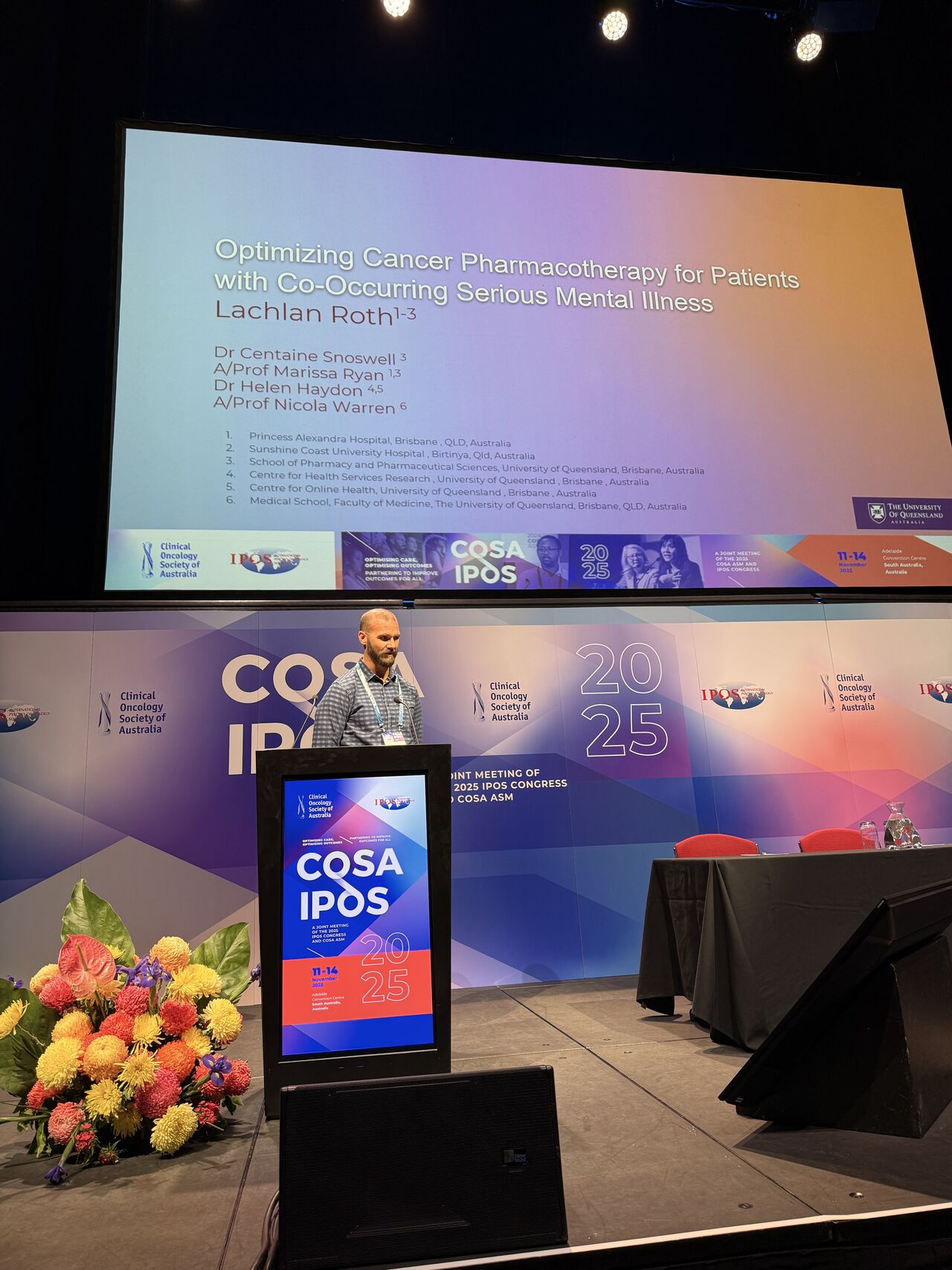 “Was great to participate today on what I thought was an excellent session lead by the oncology pharmacy COSA group. Featuring Dr Courtney Cross on the Microbiome and cancer supportive care, cancer related cognitive impairment and immunotherapy response and more, Nikola Bowden on repurposed drugs to enhance responsiveness to immunotherapy and resistant ovarian cancer, Lachlan Roth on the pharmacist role in caring for people with serious mental health concerns and I presented our work on adherence and patient perspective re medicinal cannabis in advanced cancer. Thanks to chairs Kimberley-Ann Kerr and Jenny Casanova.”