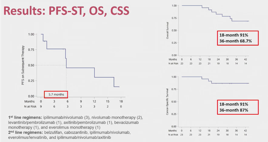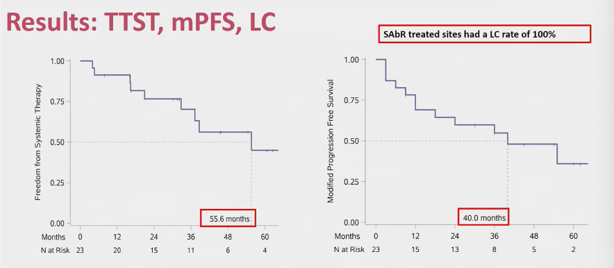 mPFS: 40 mo | OS 3y: 68.7% | CSS 3y: 87.0% PFS on systemic Rx: 5.7 mo (post-SAbR)