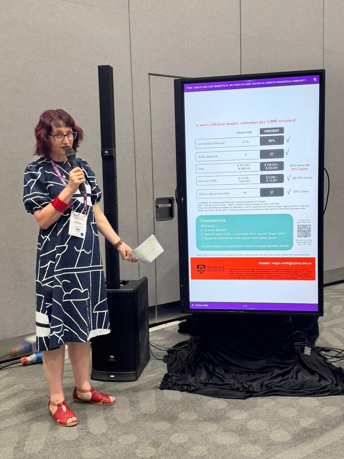 - Megan Smith presented on new results on screening in vaccinated populations in the UK, on test-of-cure after treatment in Australia, and on the cost-effectiveness of the PREVENT study in a remote Indigenous community in Australia