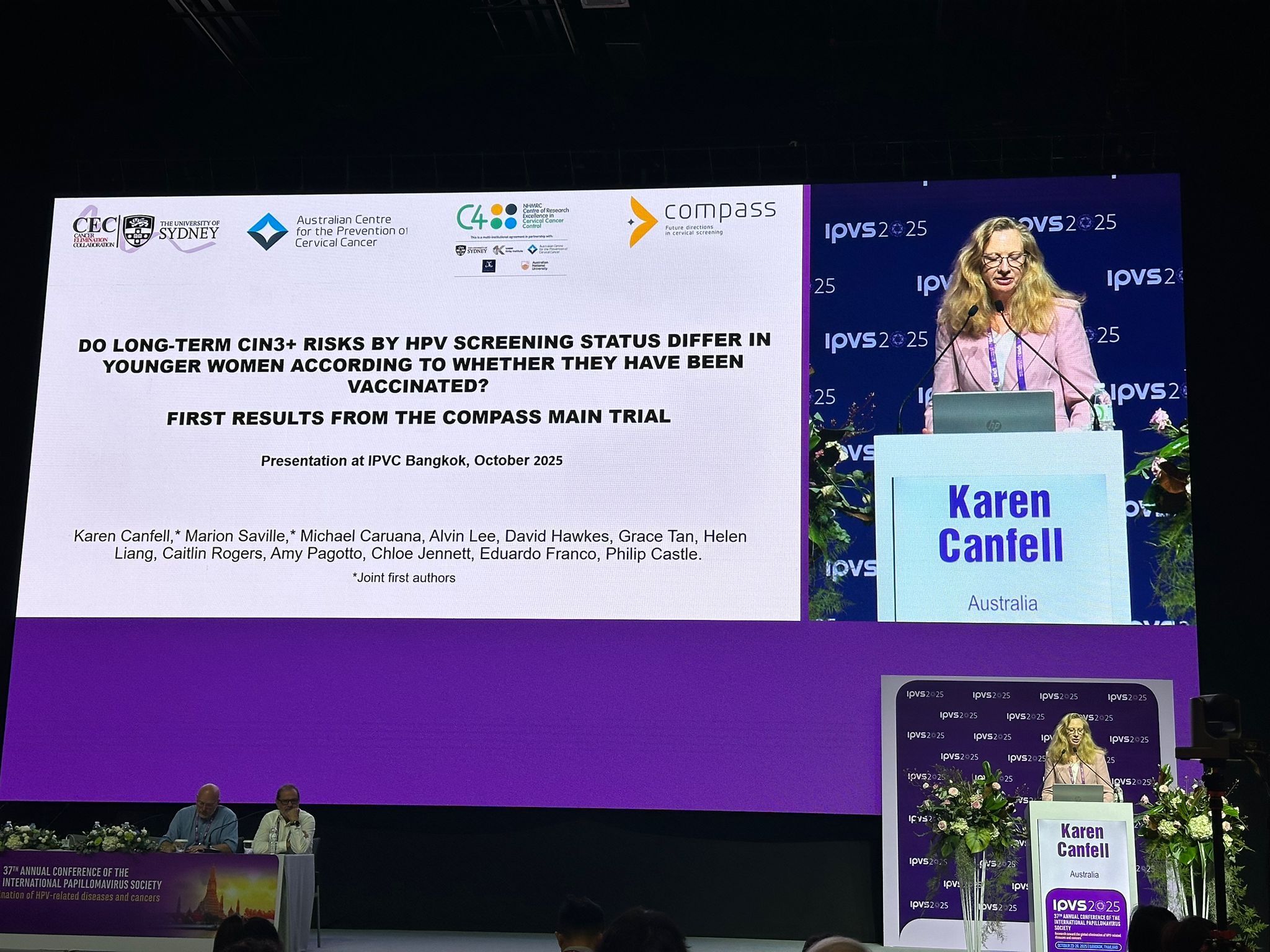 - I presented emerging results from our major Australian trial, Compass – on screening in a vaccinated population, on behalf of my co-PI Prof Marion Saville, trial statistician Michael Caruana and our many collaborators.