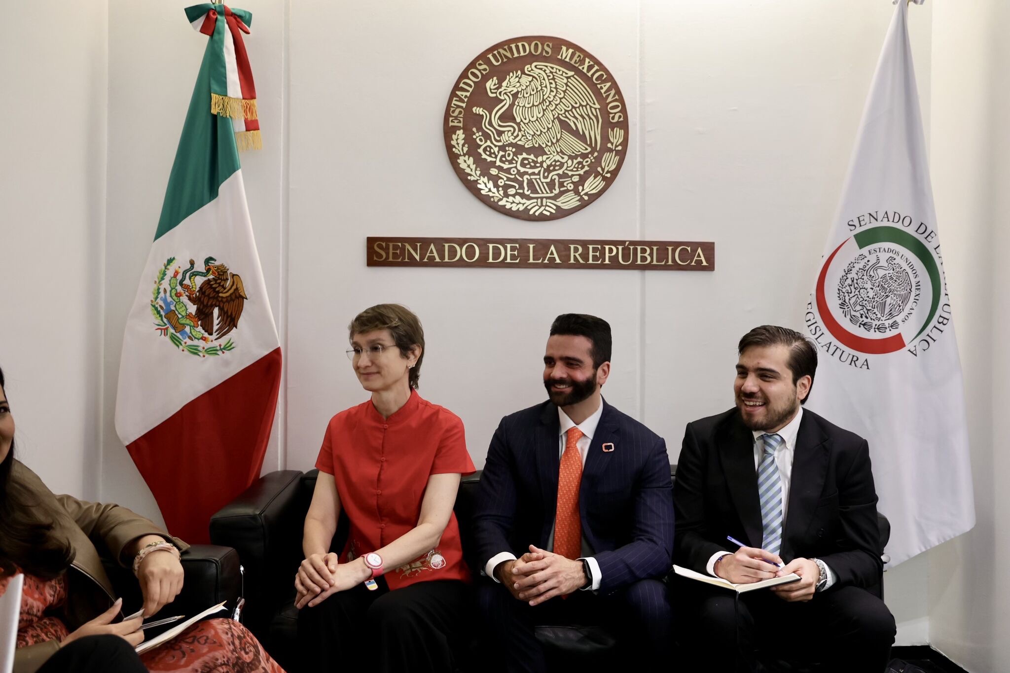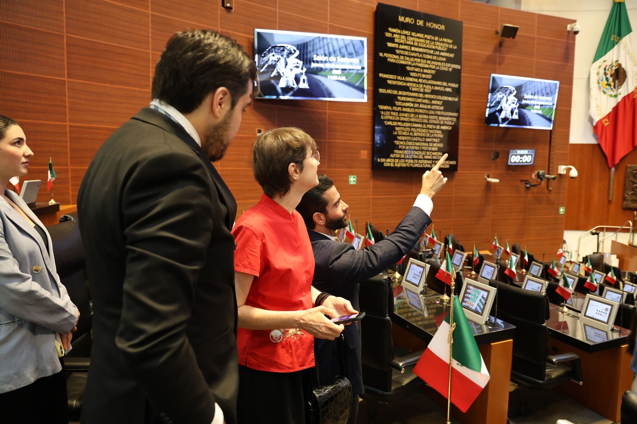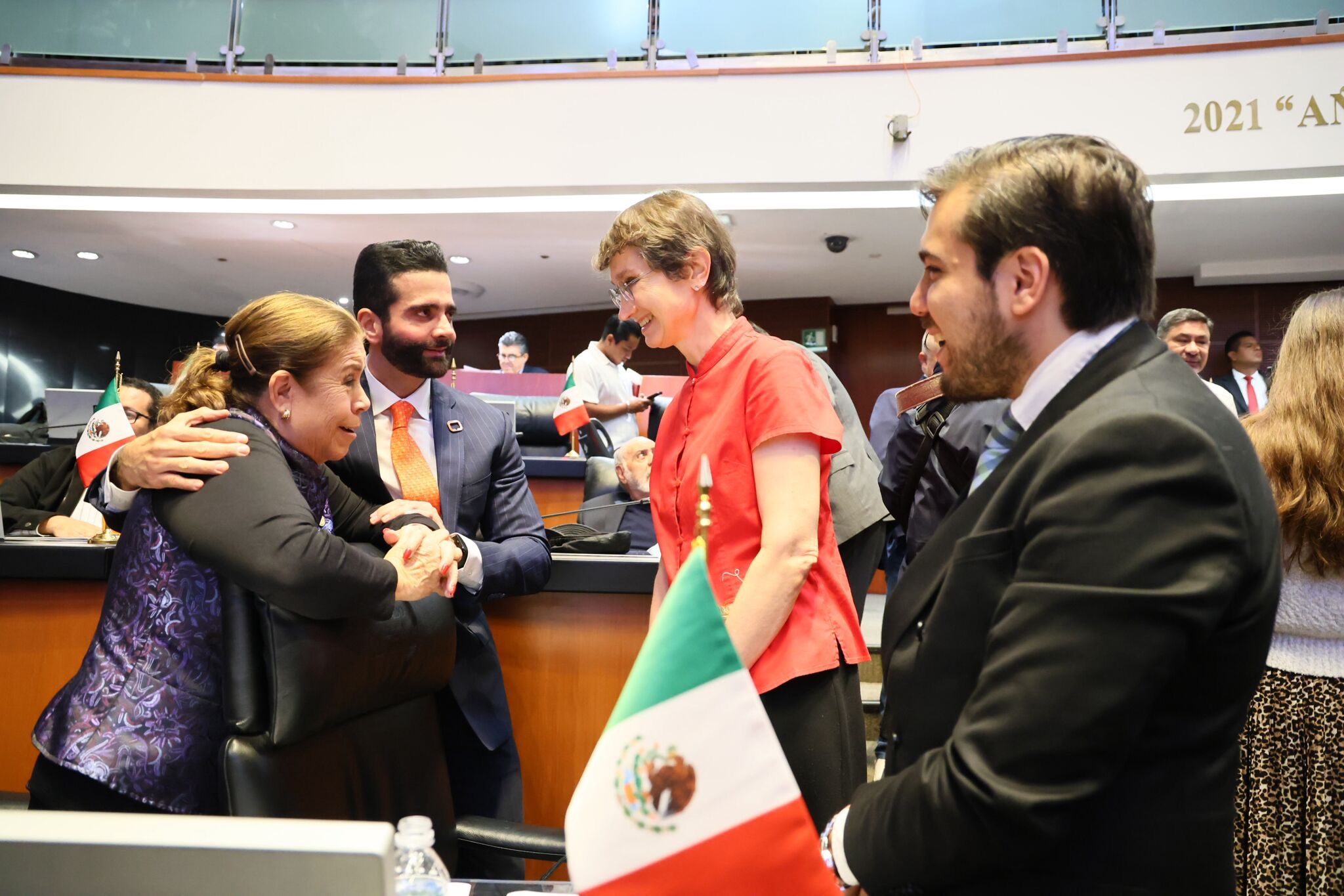 Later, we had the opportunity to enter the Plenary of the Mexican Senate, where we reaffirmed our collaboration with key allies such as Senator Lilia Margarita Valdez Martínez, Chair of the Governance Committee; Senator Imelda Castro Castro; Senator Verónica Camino Farjat; Senator Sandra Simey Olvera Bautista; and Senator Alejandra Barrales Magdaleno.