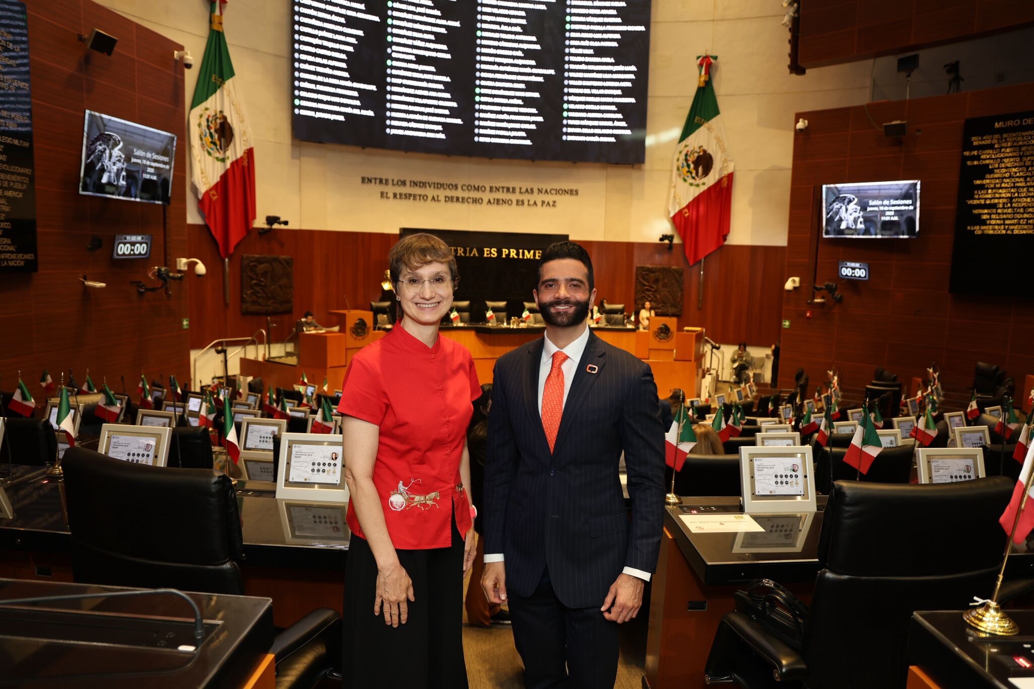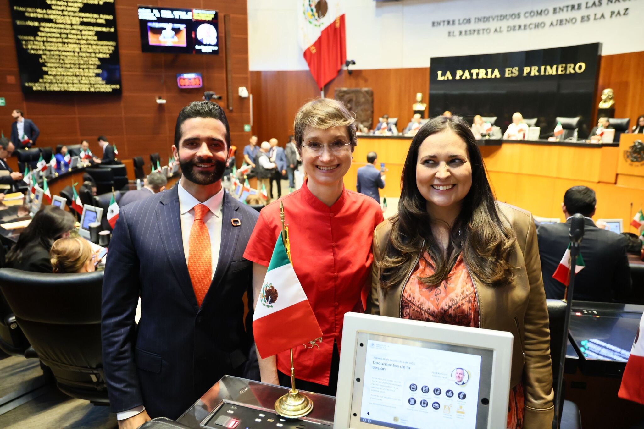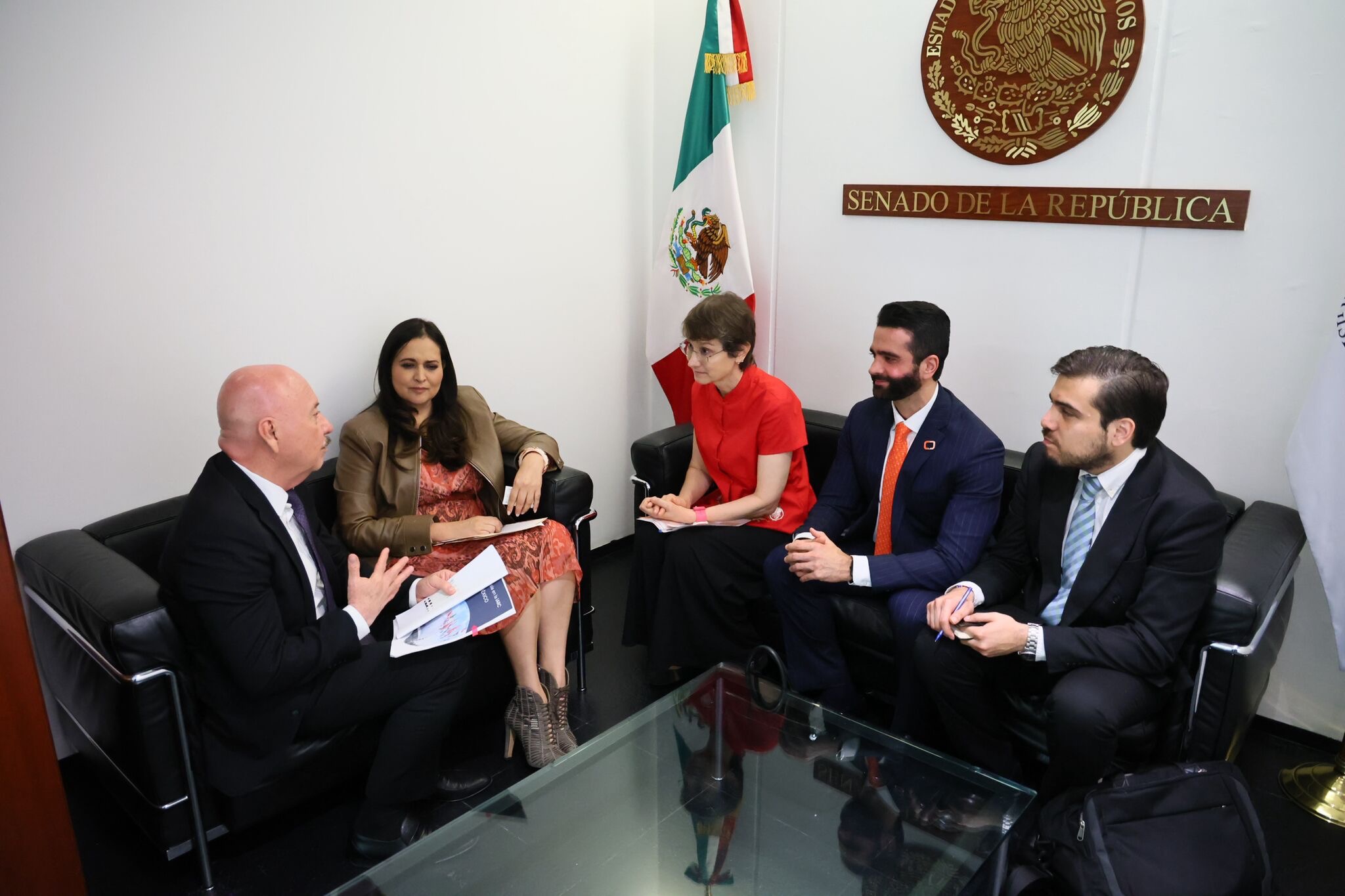 Later, we had the opportunity to enter the Plenary of the Mexican Senate, where we reaffirmed our collaboration with key allies such as Senator Lilia Margarita Valdez Martínez, Chair of the Governance Committee; Senator Imelda Castro Castro; Senator Verónica Camino Farjat; Senator Sandra Simey Olvera Bautista; and Senator Alejandra Barrales Magdaleno.