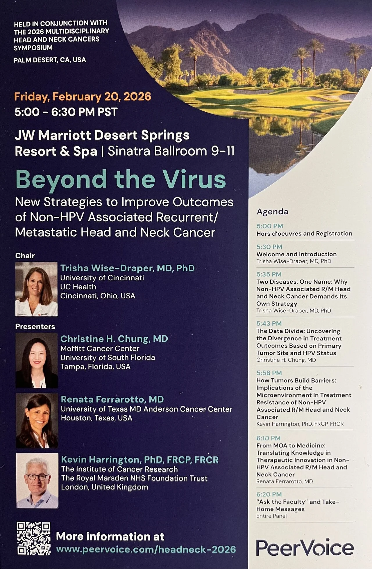 “Yesterday, I was very pleased to participate in an event to discuss ‘Beyond the Virus: New Strategies to Improve Outcomes of Non-HPV-Associated Recurrent/Metastatic Head and Neck Cancer’ in conjunction with the 2026 Multidisciplinary Head and Neck Cancers Symposium at Palm Desert, California.