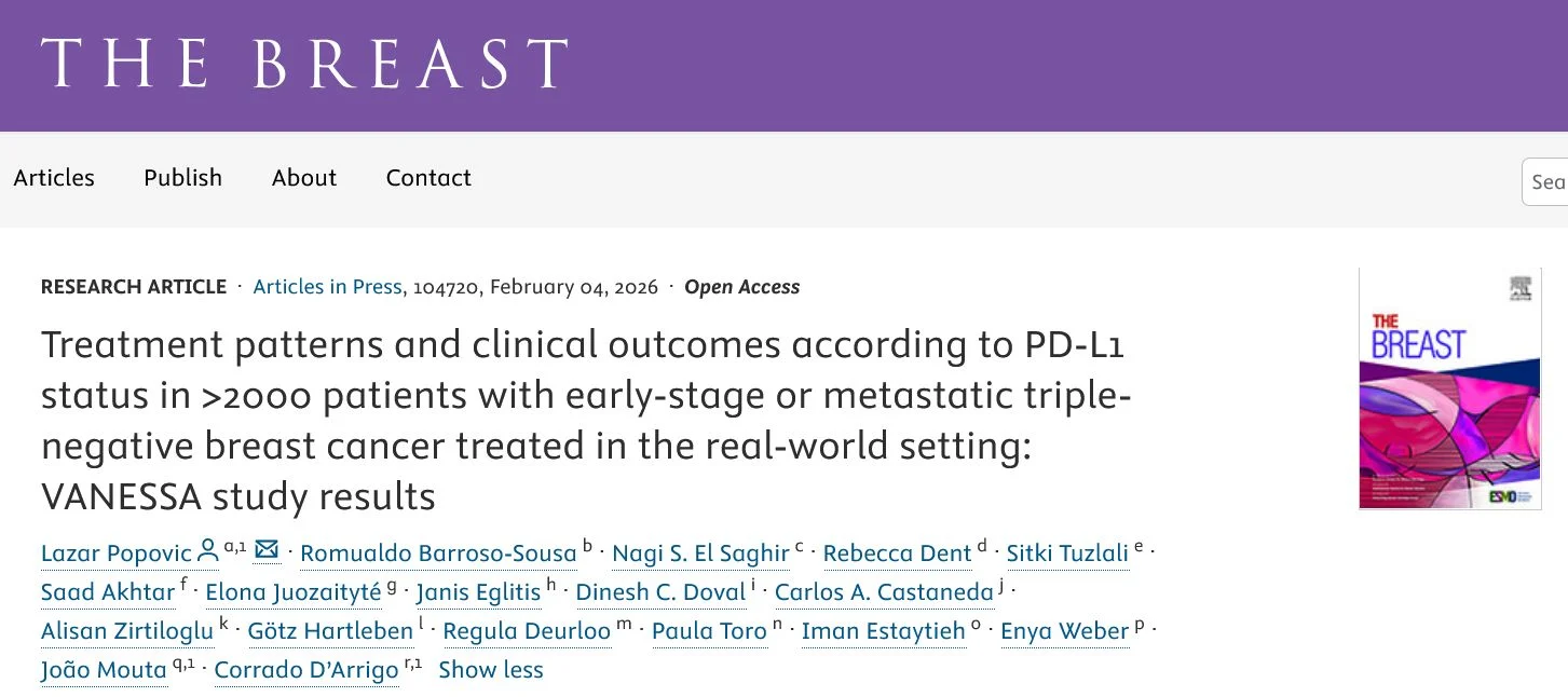 This one of the largest (if not the largest) biomarker-included RWD cohort in Triple Negative Breast Cancer ever published: VANESSA study. VANESSA is non-interventional study, I had a privilege to lead, together with my colleague Dr Corrado D’Arrigo from Wales. Included 2700 patients from 19 countries on 4 continents. I would like to thank all the investigators, co-authors and especially João Mouta and whole Roche team for opportunity, help and huge support.”