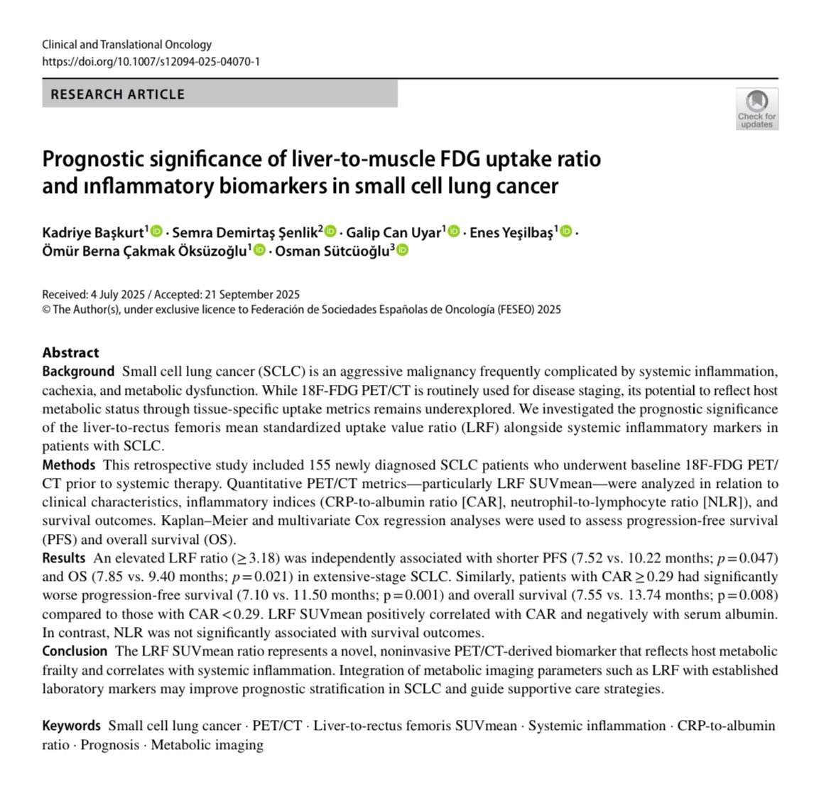 ‘Prognostic significance of liver-to-muscle FDG uptake ratio and inflammatory biomarkers in small cell lung cancer.’