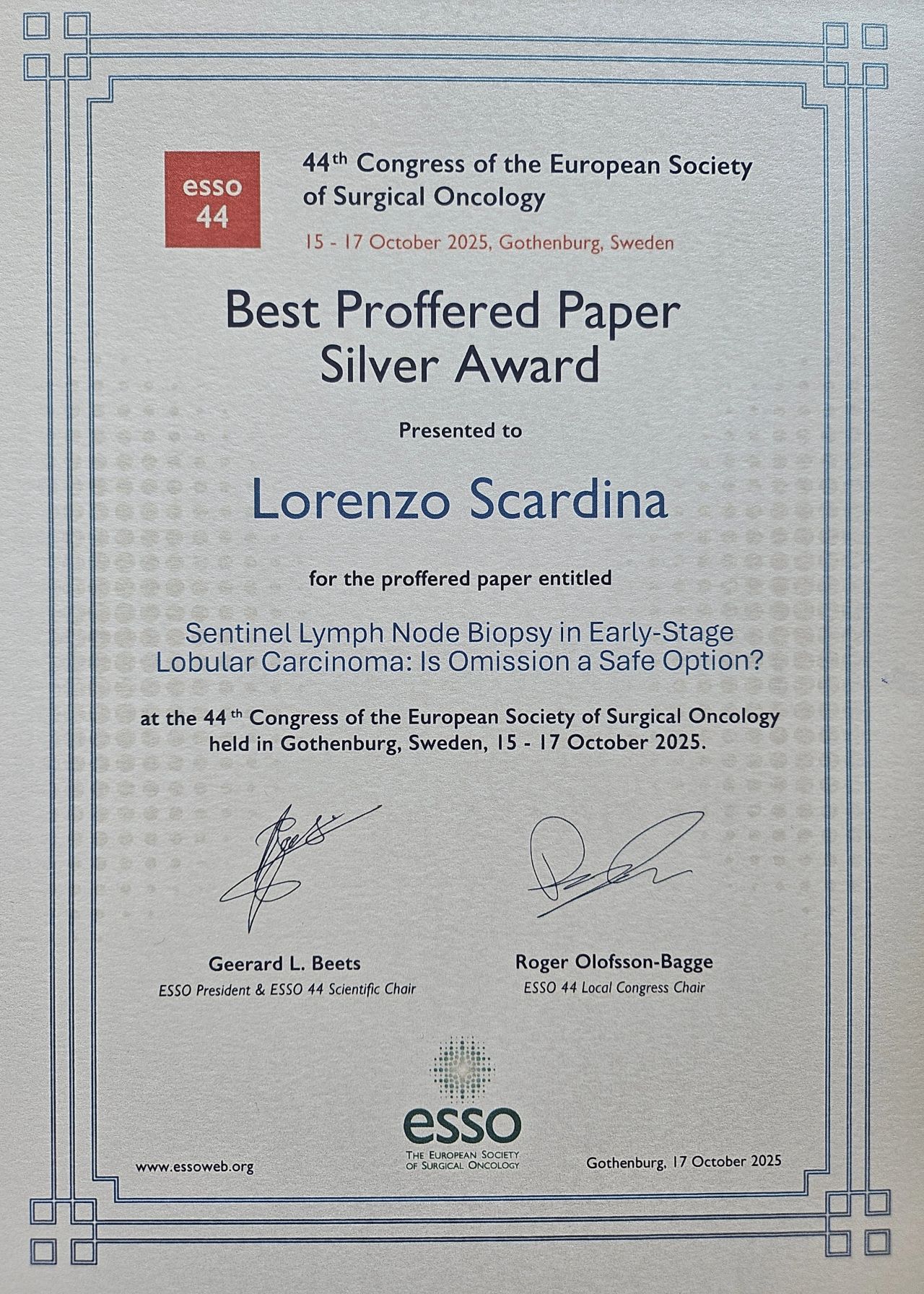 “Attending the 44th European Society of Surgical Oncology (ESSO) Congress in Gothenburg has been an inspiring and rewarding experience.