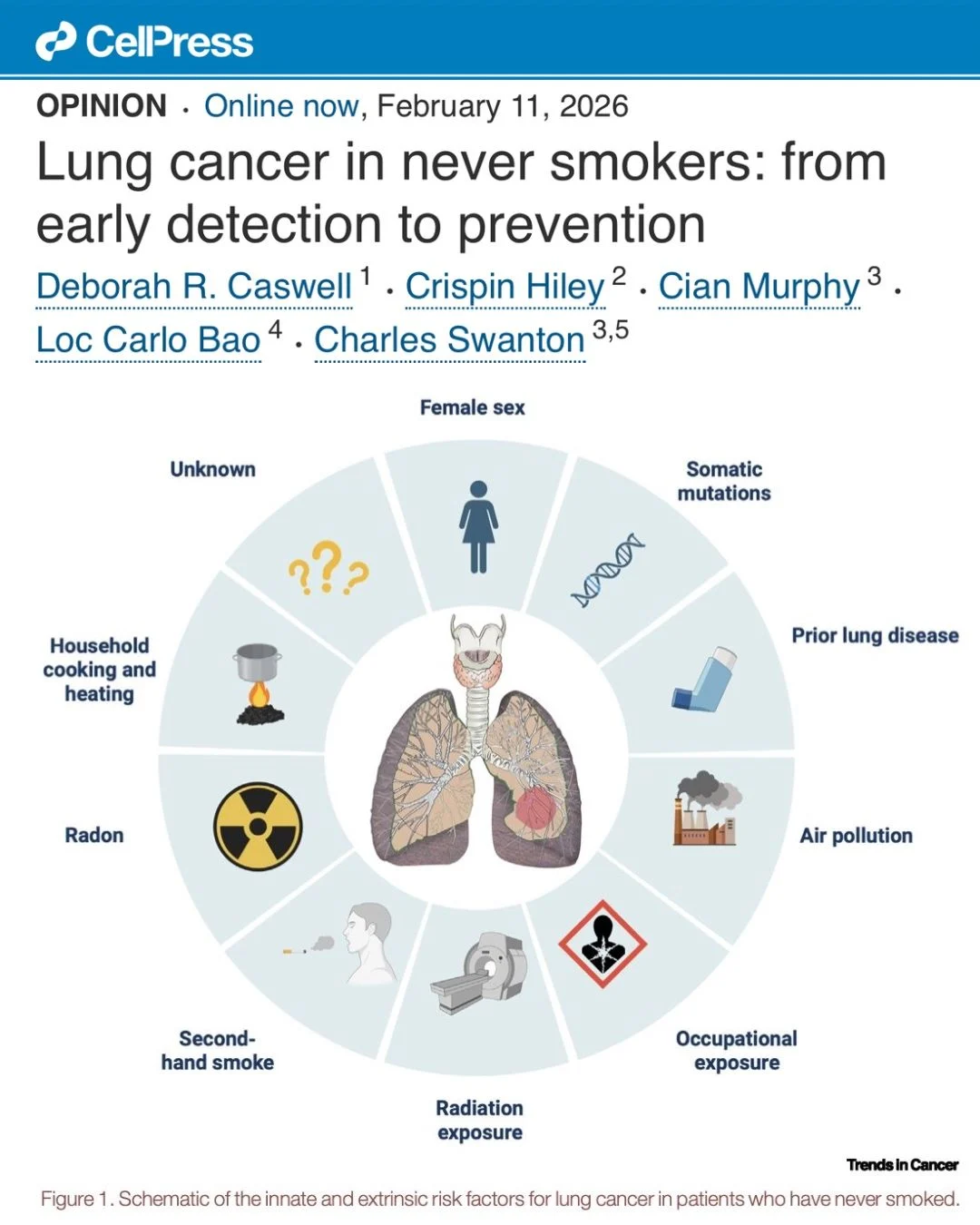 A new opinion piece in Trends in Cancer brings together growing evidence that lung cancer in never smokers is biologically distinct, shaped by different risk factors, and not well served by current approaches to risk assessment or screening.
