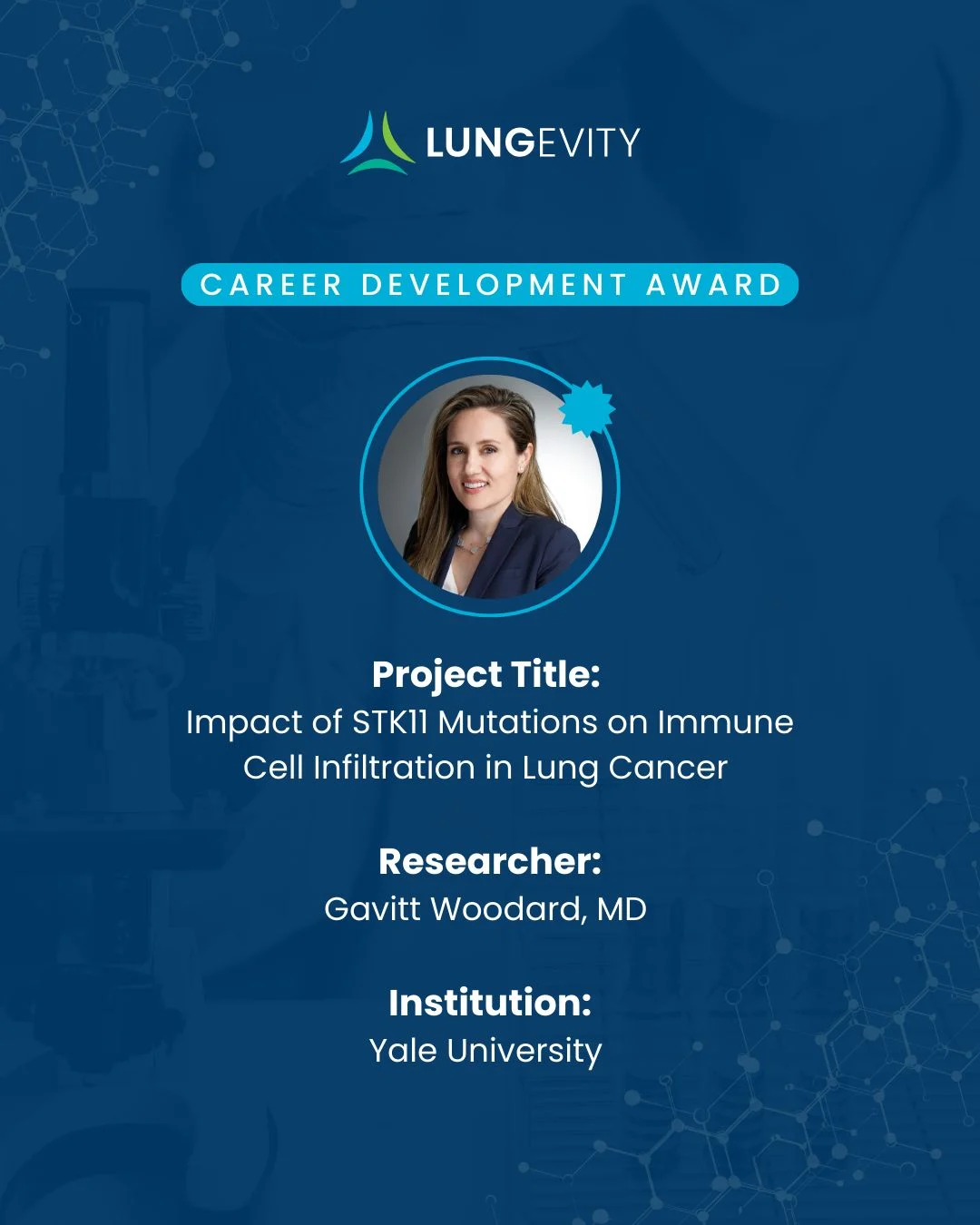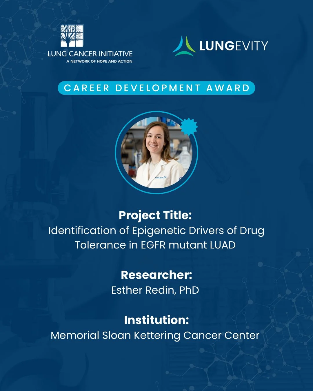 The 2025 awardees represent early-career investigators working on projects that address some of the most pressing needs in lung cancer today. Through these awards, LUNGevity continues to drive innovation and hope—empowering scientists to make discoveries that will change what it means to be diagnosed with lung cancer.