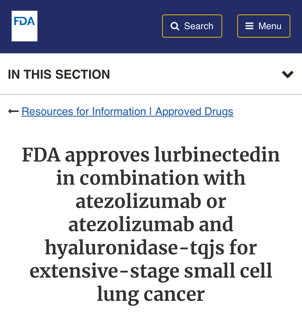 Maintenance Lurbinectedin (in combination with Atezolizumab) as maintenance Treatment after 1st line induction for: