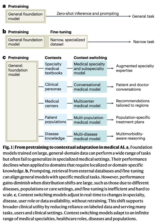 Early approaches to context switching, such as prompt engineering, fine-tuning, in-context learning, and re-training, produce great examples of success. But scaling medical AI requires a shift toward context switching at inference time.