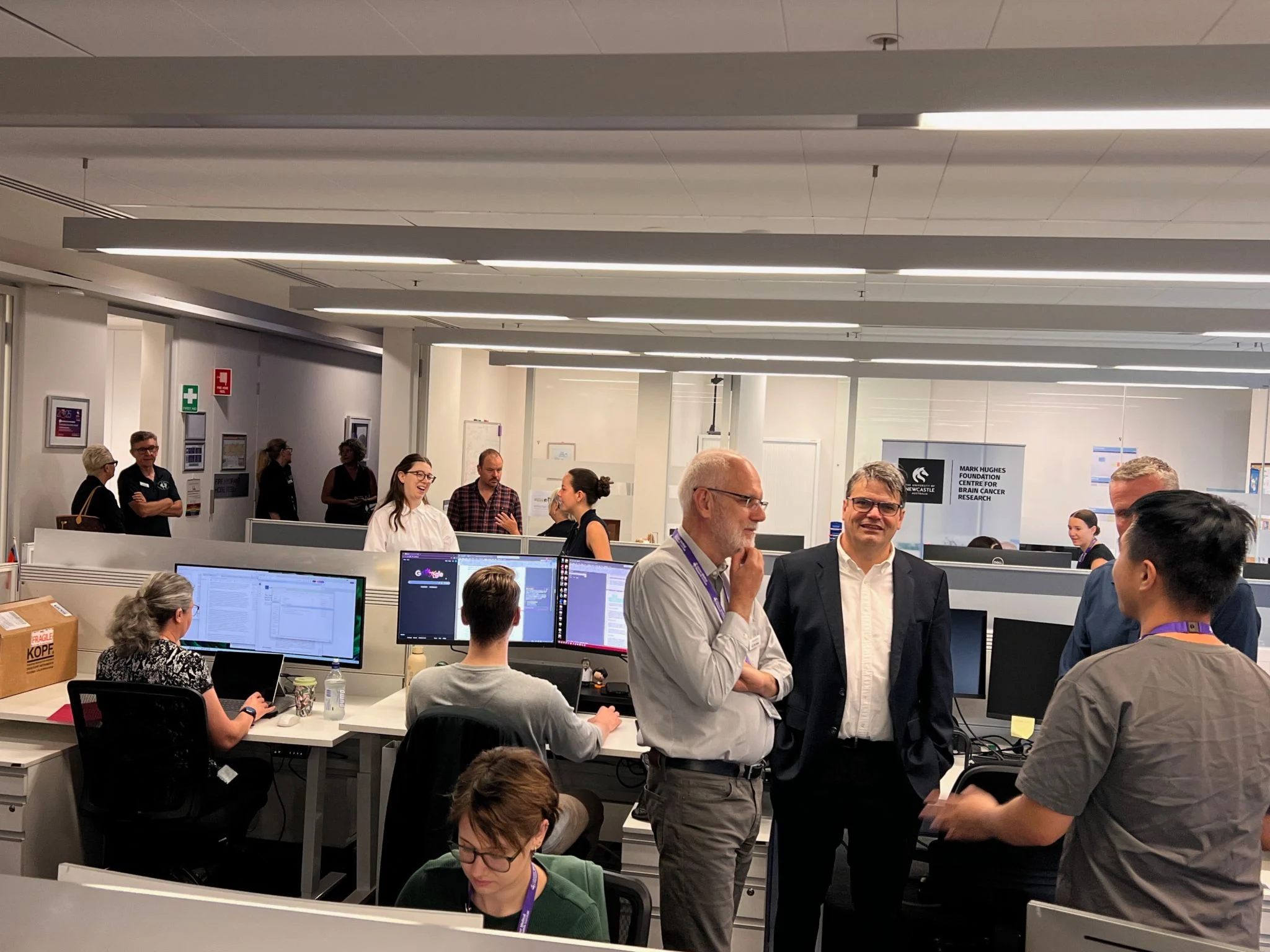 “We were thrilled to welcome Mark Hughes OAM to the MHF Centre where he had the chance to chat with our team members and learn more about their work. Mark spoke with PhD students, post-doctoral scientists and Stream Leaders from our Imaging, Translational Neuroscience, Experimental Therapeutics and Patient Experience streams about the important work they’re doing in brain cancer research.