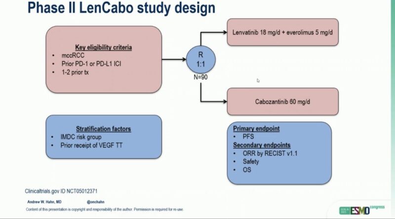 “LENCABO trial Phase 2 in mCCRCC after progression disease after anti-PD1, shows better PFS for Lenvatinib plus everolimus vs Cabozantinib with more toxicity to LENEVE.”