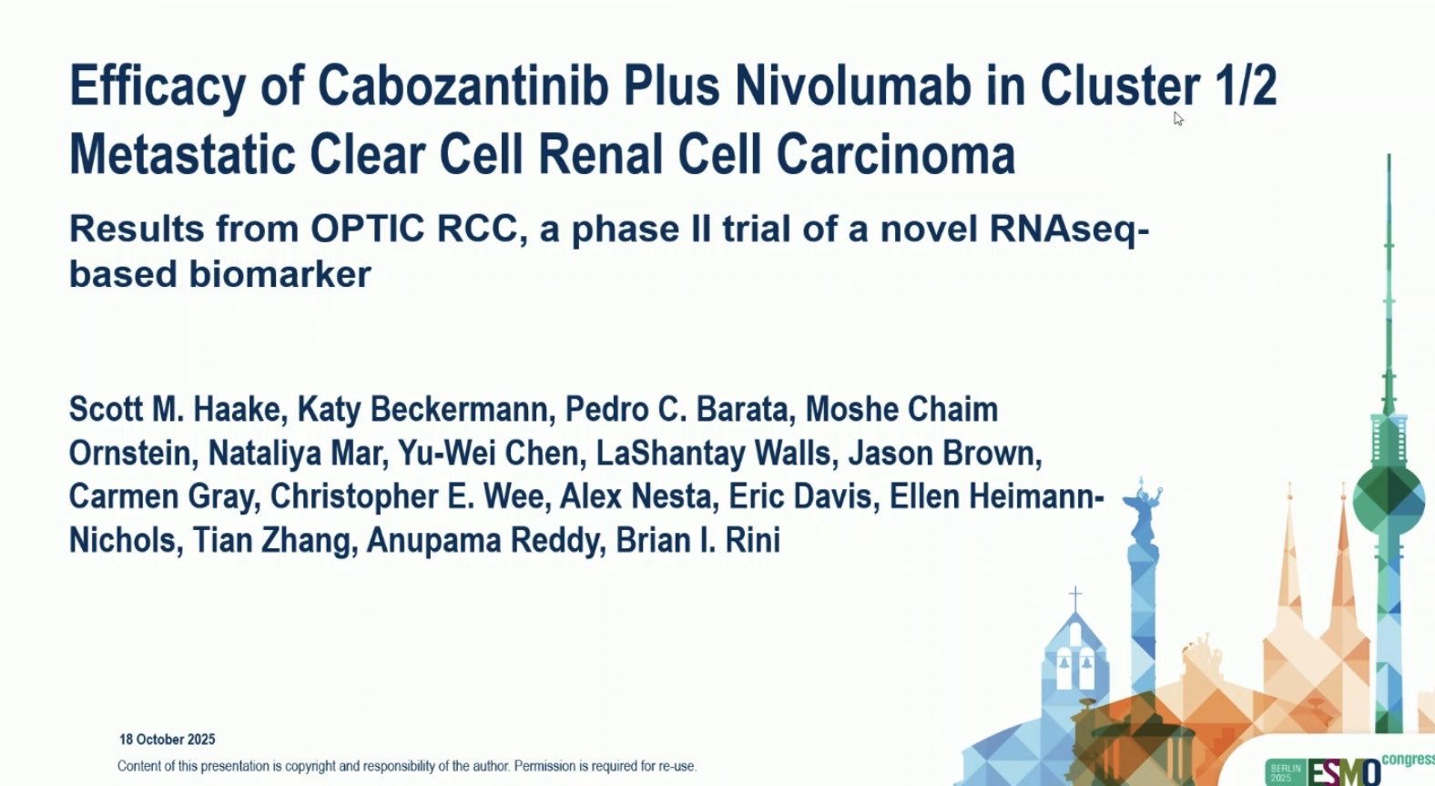 “OPTIC RCC trial including genomic profiles into the management of mRCC, shows that nivo cabo has a good ORR in angiogenic signatures.”