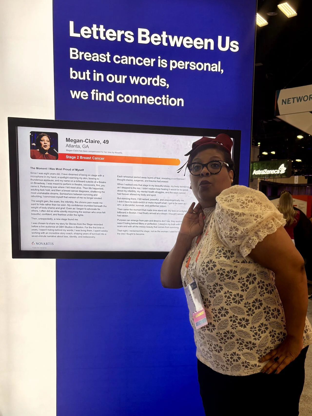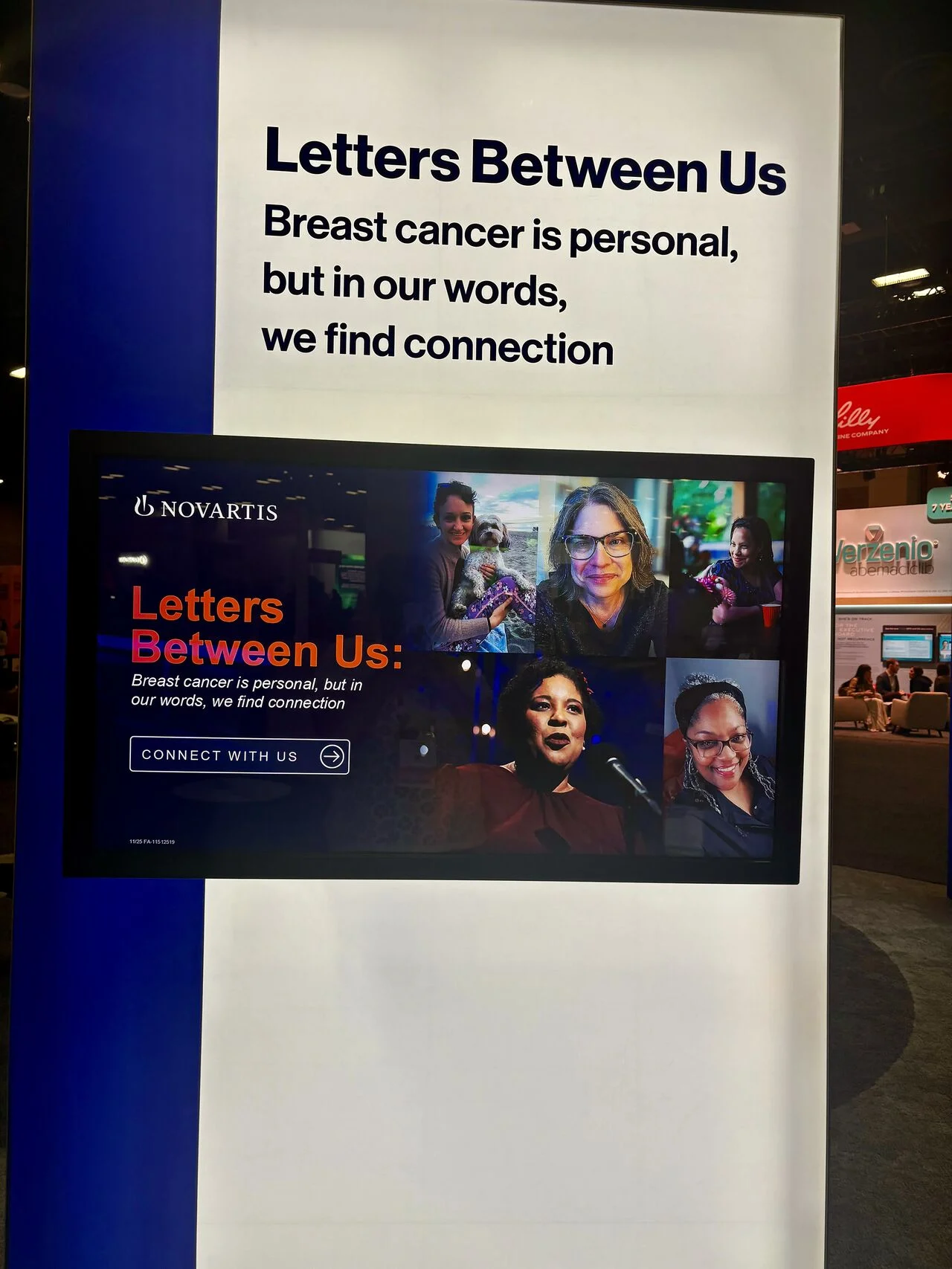 “I must say, I had a few pinch-me moments at SABCS25. Seeing my words, and my face, so visibly featured in the Novartis US advocacy booth stopped me in my tracks.