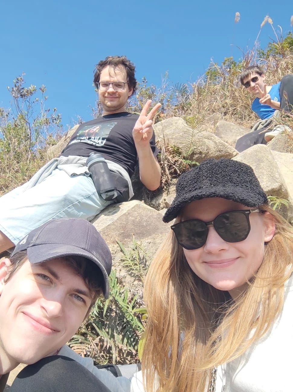 ​And to keep the spirits high… we swapped lab coats for hiking boots and took on Ma On Shan. Special kudos to Kirill Kriukov, Nikita, Pavel Ivanov-Rostovtsev, and Alisa Potapova for making the journey! First, enjoying the holiday breeze at Ngong Ping Campsite and going all the way to Sai Kung.