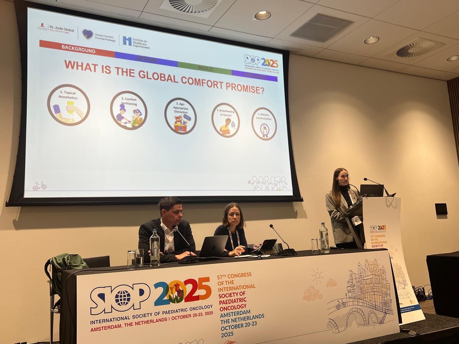 One of the best parts of my job is the opportunity to learn from some incredible researchers who work with our team. It was so awesome to share the podium with Sarah Monesmith, MPH, who presented our work on reducing procedural pain globally, and Eddy Carolina Pedraza S., for sharing work on access to essential pain medicines globally.