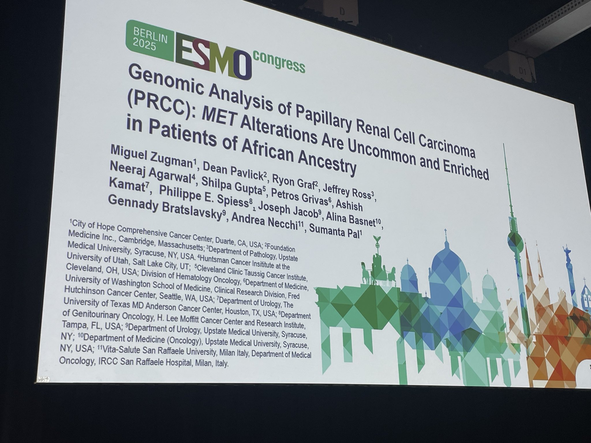 ”Flawless presentation from Miguel Zugman, Einstein Hospital Israelita, City of Hope at ESMO 25. From the podium, he presented data pertaining to MET alteration in papillary kidney cancer, shedding light on the role of chr7. Also appreciated the thoughtful discussion by Ignacio Duran, with a solid interpretation of the data.”