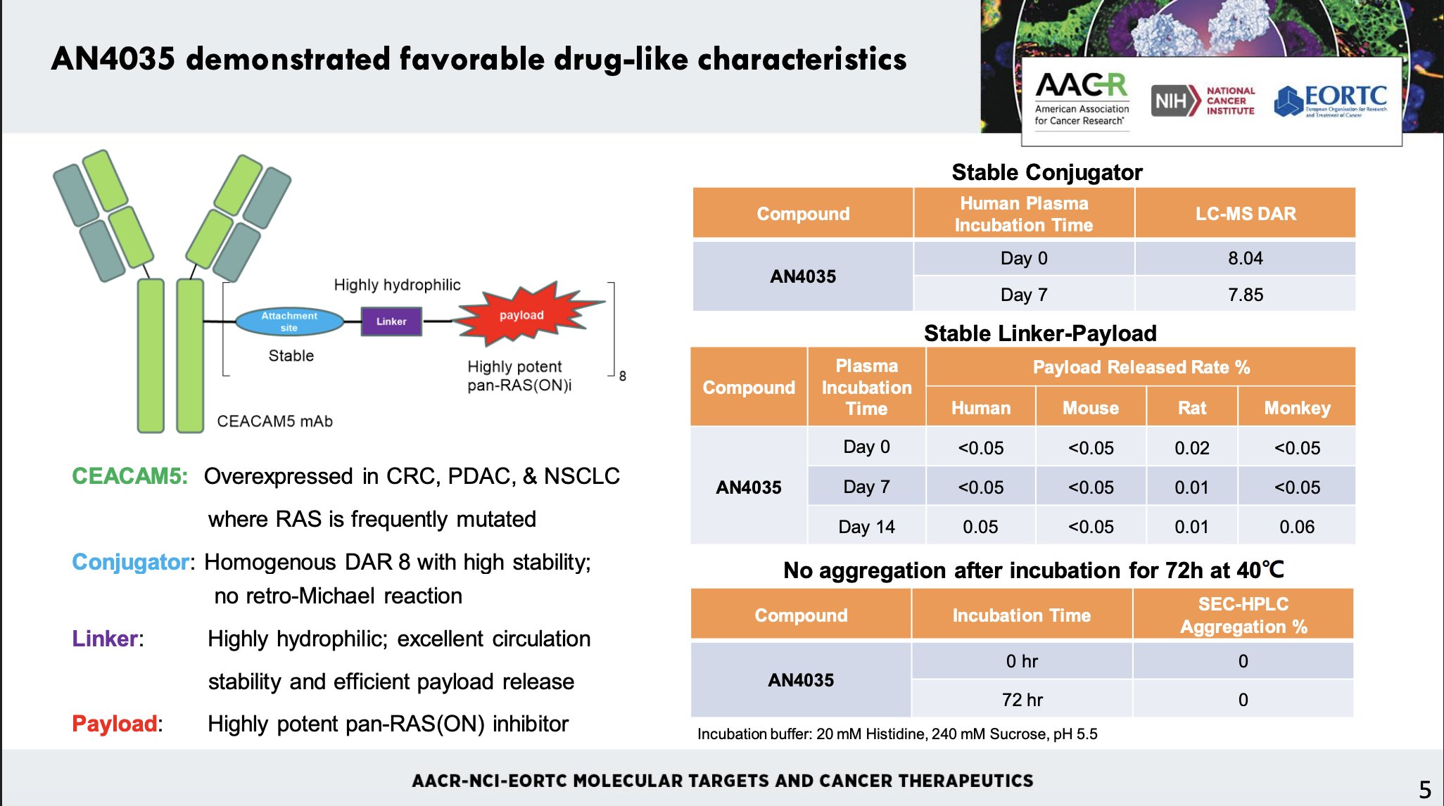 Now, at the recent AACR-NCI-EORTC 2025 conference, Adlai Nortye $ANL unveiled its Pan-RAS(ON)-conjugated ADC candidate AN4035.