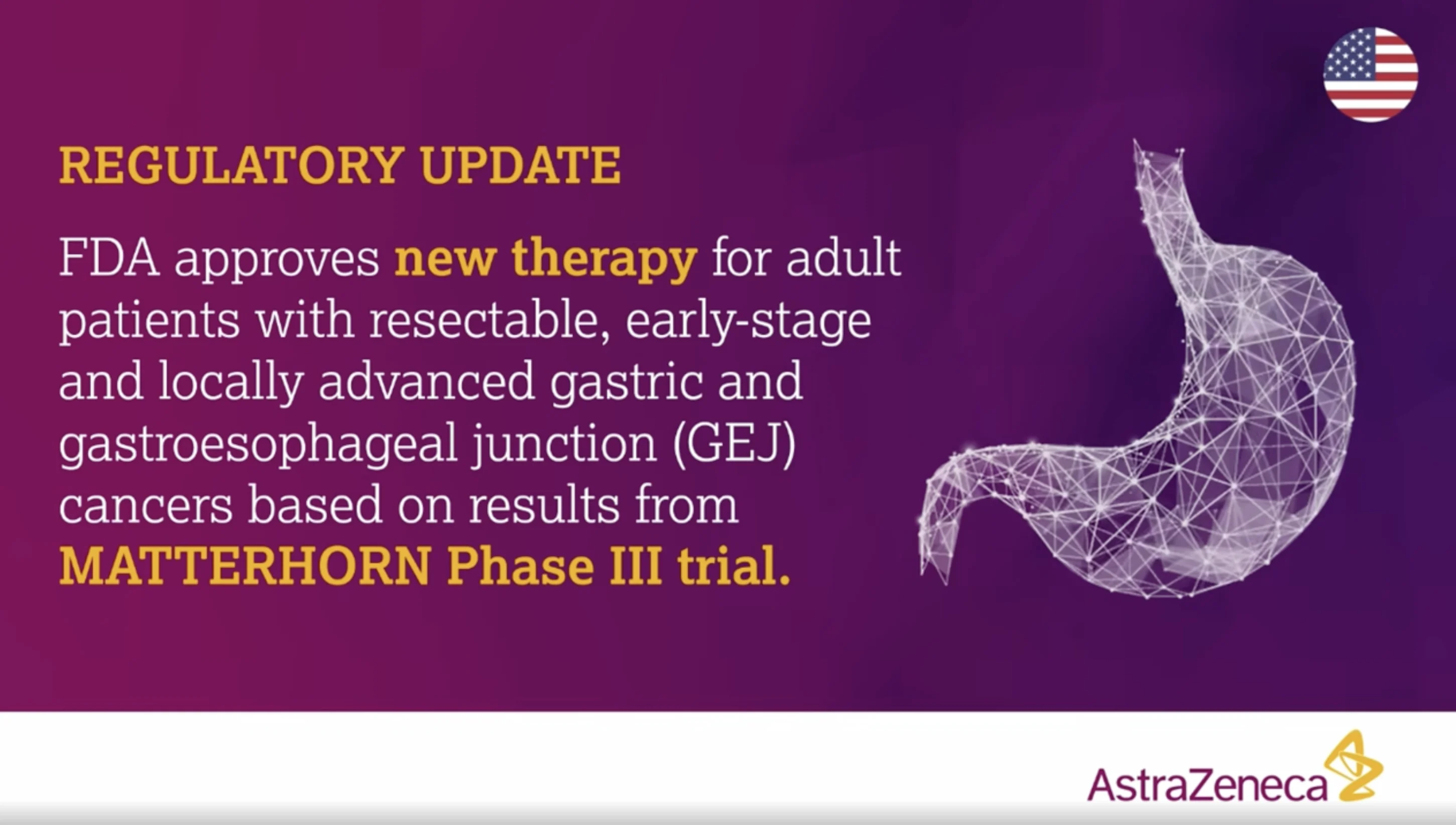 I’m proud to share that the FDA has approved AstraZeneca’s MATTERHORN regimen for treatment of adult patients with resectable, early stage and locally advanced gastric and gastroesophageal junction (GEJ) cancers. This marks a significant milestone in a setting that has seen limited innovation in treatment options for over two decades!