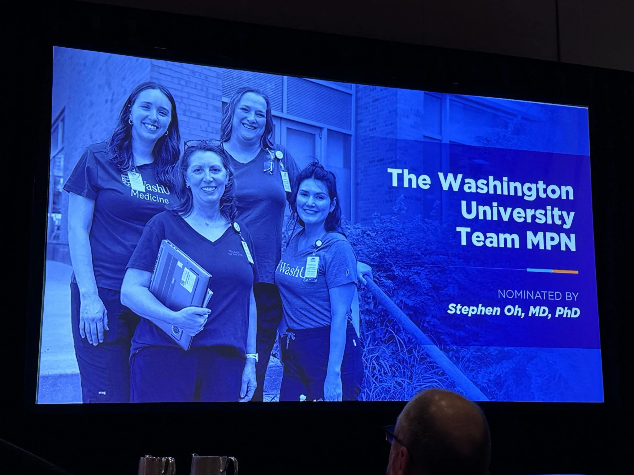 “What a wonderful evening celebrating all of the MPN Heroes, especially our Team MPN research coordinators Nicole, Karyn, Maggie, and Julie! Their extraordinary efforts are truly deserving of this award! And what a strong Washington University School of Medicine in St. Louis turnout supporting our team!”