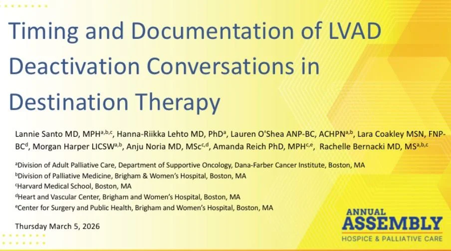 - Palliative care in cardiovascular disease – including integration for patients with LVADs, reflecting the growing need beyond oncology.