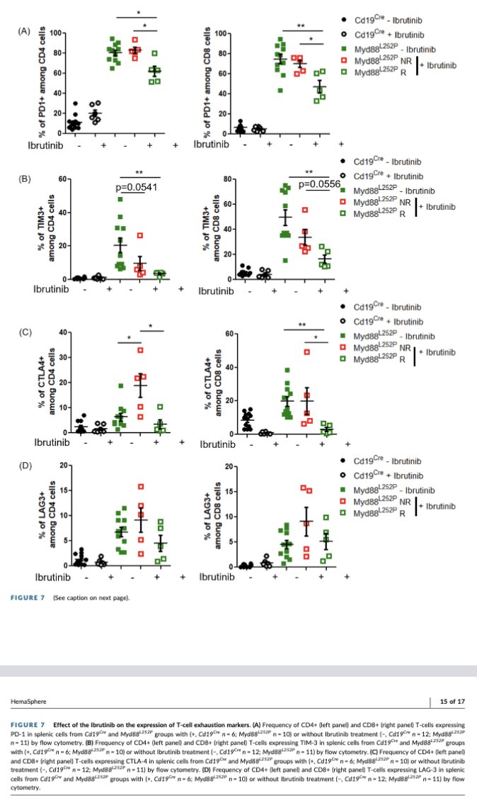 T-cells near Waldenström-like tumors in mice are disrupted, tumor B-cells adopt an immunoregulatory phenotype evoking regulatory B-cells, ibrutinib decreases B-cell activation/expansion and partially reverses T-cell depletion.”