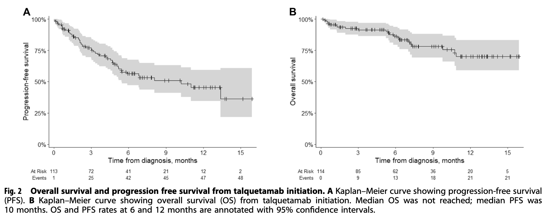 Multicenter retrospective analysis of 114 RRMM pts txd w/ talquetamab finds ORR 73%, CR 26% and VGPR in 26%, 6-month PFS and OS of 56 and 86%; common AEs included CRS (54% with grade ≥2), infections (27%), and ICANS (9.8%).”