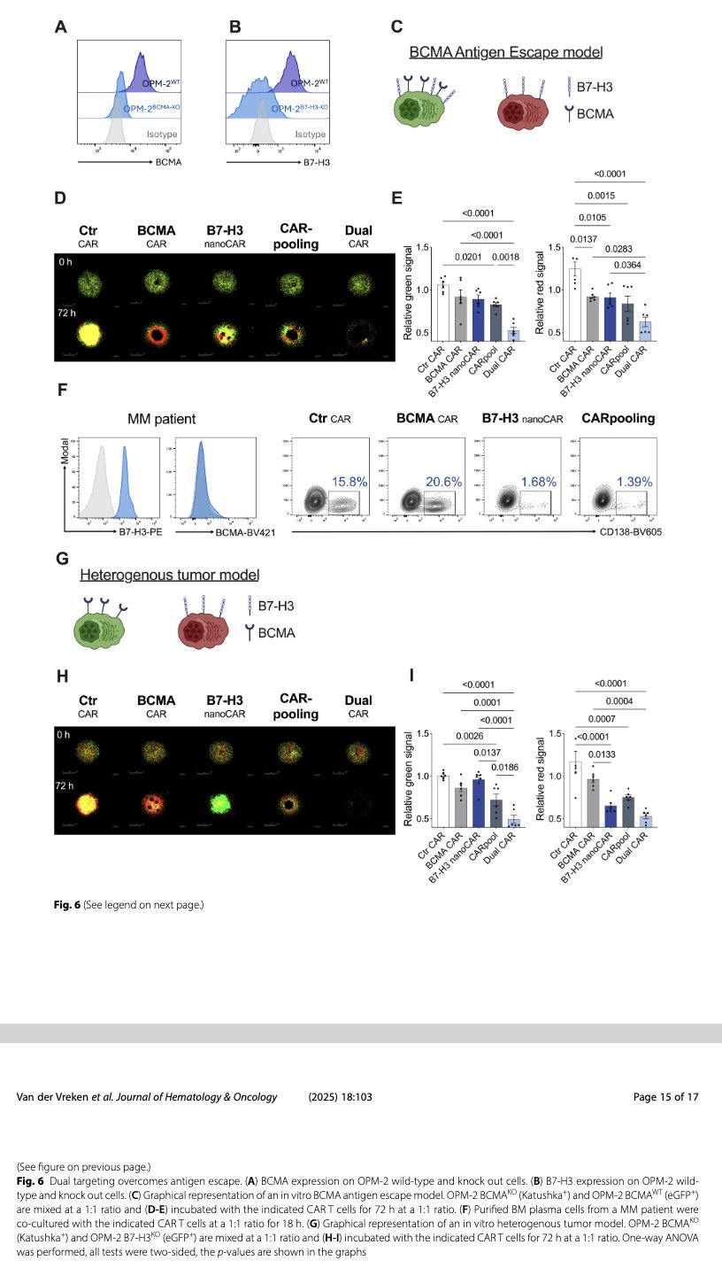 Title: B7-H3 nanobody-based CAR T cells control multiple myeloma growth, while dual BCMA/B7-H3 CAR T cells overcome antigen escape