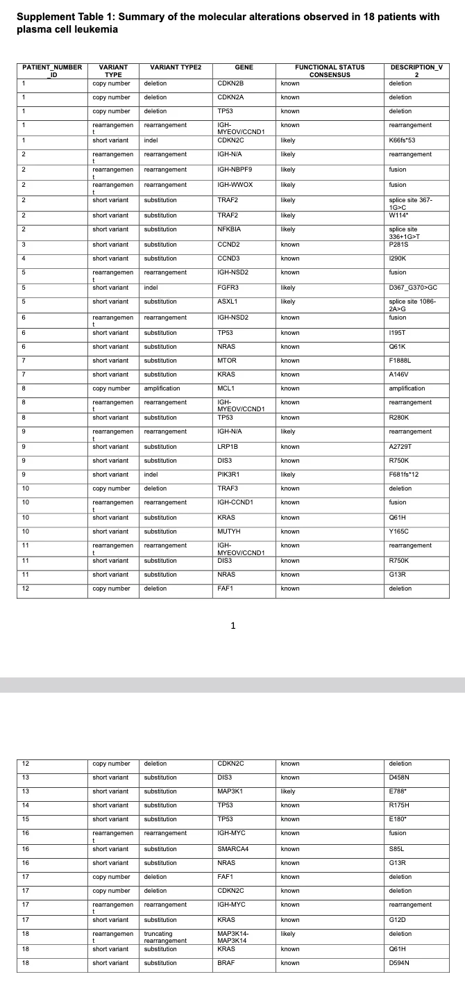 Title: Plasma Cell Leukemia: Genomic Features and Their Potential Relevance for Exploring Clinical Actionability