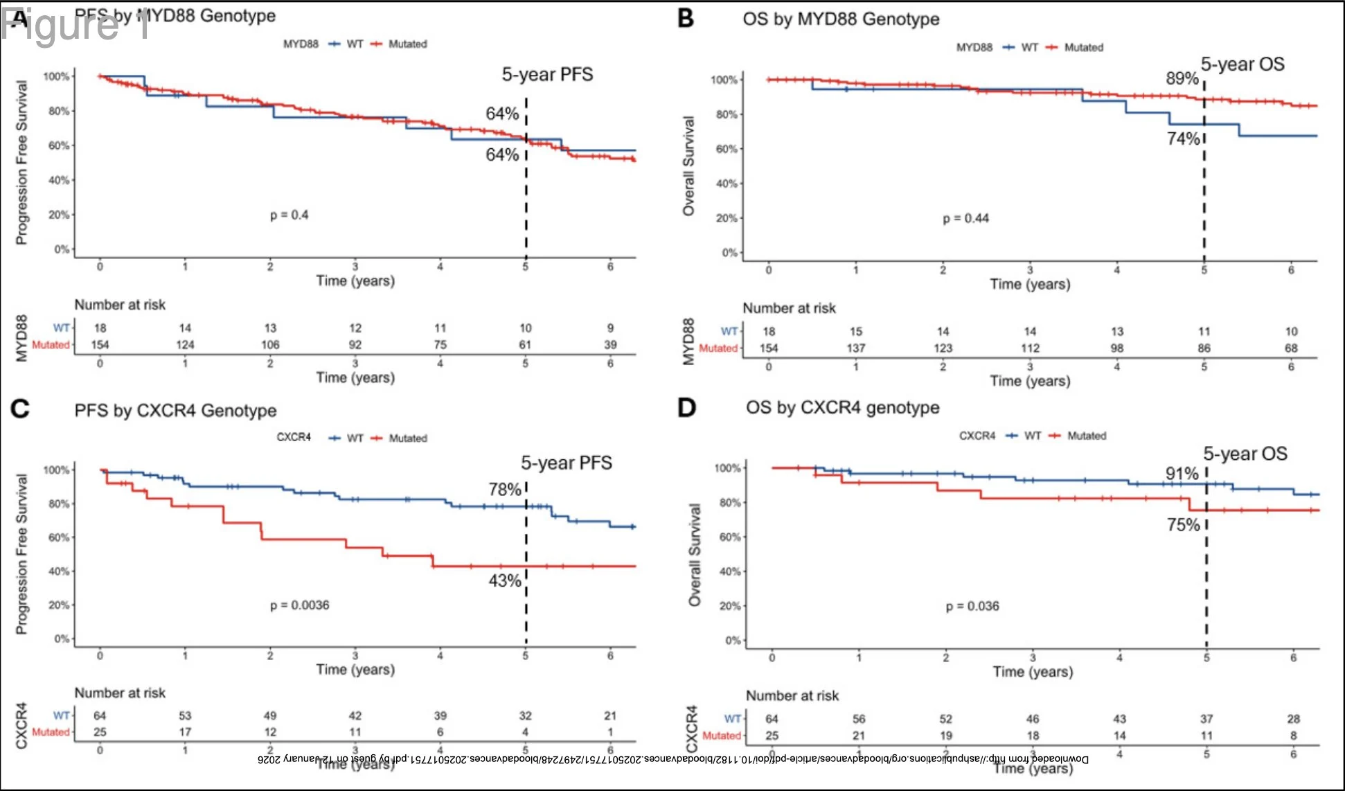 Progression of disease within 24 months is a novel determinant of prognosis in patients with Waldenström macroglobulinemia who have received frontline fixed-duration induction therapy with bendamustine-rituximab.”