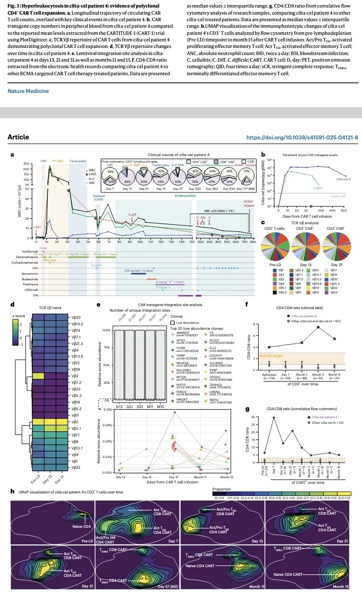 Authors: Matthew Ho, Luca Paruzzo, Julia Han Noll, Federico Stella, Pooja Devi, Sonia Ndeupen, Yael A. Day, Gregory M. Chen, Ivan J. Cohen, Angel Ramirez-Fernandez, Adam Waxman, Shivani Kapur, Fang Chen, Rong Xu, Andrew Huff, Danuta Jarocha, Vrutti Patel, Audrey C. Bochi-Layec, Ranjani Ramasubramanian, Shan Liu, Riemke Bouvier, Vitor B. de Souza, Heta Patel, Ziyu Li, Alberto Carturan, Peter Michener, Caitlin R. Hopkins, Owen Koucky, Janna Minehart, Alex Dimitri, Neel R. Nabar, Zainul S. Hasanali, Bryan T. Ciccarelli, Putzer Hung, Erik Williams, Robert Bartoszek, Maya Lavorando, Suyash Mohan, Vanessa E. Gonzalez, Patrizia Porazzi, Vijay G. Bhoj, Sokratis A. Apostolidis, Dan T. Vogl, David L. Porter, John Scholler, Caroline Diorio, Aoife M. Roche, John K. Everett, Frederic D. Bushman, Katherine L. Nathanson, Edward A. Stadtmauer, Sandra P. Susanibar-Adaniya, Alfred L. Garfall, Marco Ruella, Adam D. Cohen and Joseph A. Fraietta