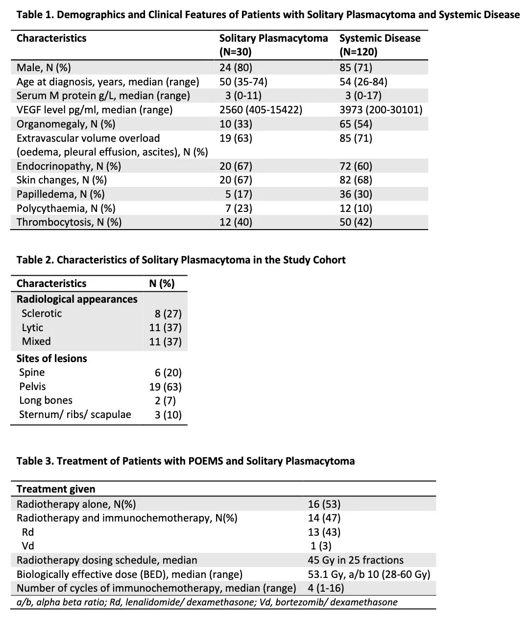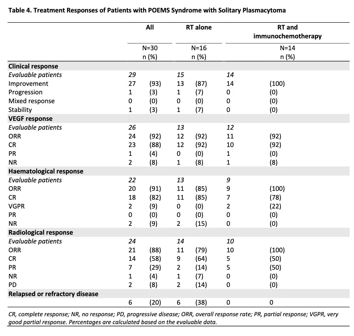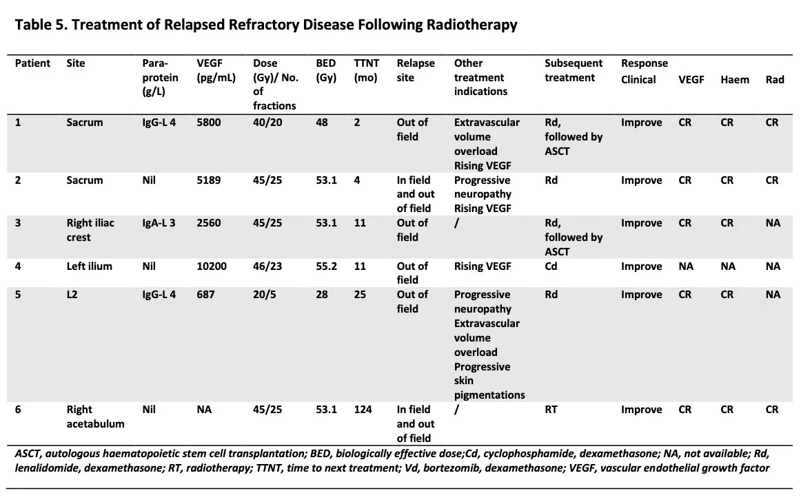 Study demonstrates high efficacy of radiotherapy in patients with POEMS syndrome and solitary plasmacytoma and highlights potential benefits of combining radiotherapy (92-100% ORR; 5-year OS 100%, PFS 82%) and immunochemotherapy.”