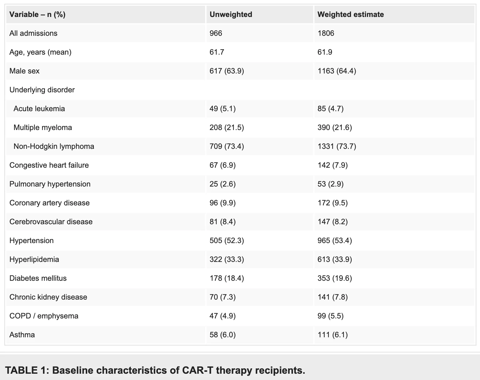 CMV infection in CAR-T recipients is associated w/ increased in-hospital mortality (15.8% vs. 2.5%; RR 6.32), extended hospital stays (41.5 vs. 15.9 days; adjusted ratio 1.67), and higher risk of encephalopathy (RR 13.21).”