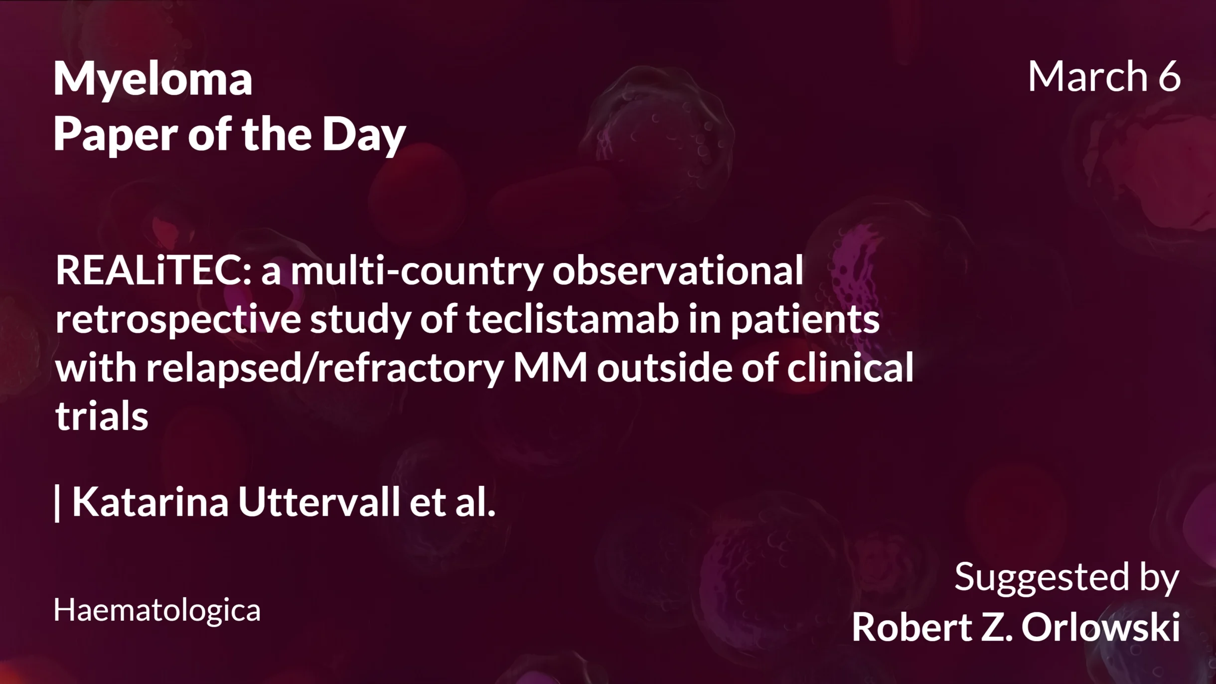 Authors: Katarina Uttervall, Martin Kortum, Aurore Perrot, Sarah Farmer, Michele Cavo, Bhuvan Kishore, Caroline Jacquet, Maria Casanova, Markus Hansson, Katja Weisel, Hila Magen, Carmine Liberatore, Charlotte Hansen, Moshe Gatt, Tamir Shragai, Matteo Da Via, Teresa Alvarez, Mathew Streetly, Marc Raab, Salomon Manier, Jesper Aegesen, Claire Albrecht, Peter Hu, Pavel Smirnov, Diptendu Santra, Eva Rubio-Azpeitia, Rakesh Popat